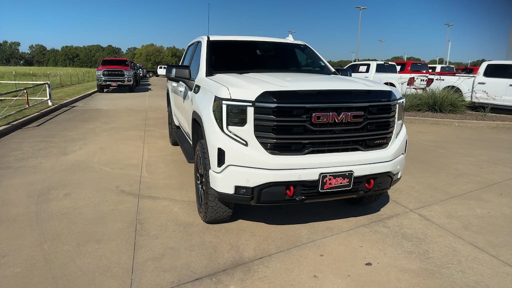 This 2025 GMC Sierra 1500 AT4 in Summit White comes with the following features: 3.0L I6 10-Speed Automatic 4WD AT4 Preferred Package (Power Sliding Rear Window w/Rear Defogger and Universal Home Remote), AT4 Premium Package (Off-Road High Clearance Step (LPO)), Preferred Equipment Group 4SB (120-Volt Bed Mounted Power Outlet, 120-Volt Interior Power Outlet, 2 Charge/Data USB Ports Inside Center Console, 2 Type-C Charge-Only Rear USB Ports, 2 USB Ports, 220 Amp Alternator, Auto-Locking Rear Differential, Black Chrome Grille Insert Bars, Color-Keyed Carpeting Floor Covering, Deep-Tinted Glass, Electric Rear-Window Defogger, Floor-Mounted Center Console, Front Prem Floor Liners w/Removable Carpet Insert, Front Rain-Sensing Wipers, HD Surround Vision, Heated 2nd Row Outboard Seats, Heated Driver & Front Outboard Passenger Seating, Heavy-Duty Air Filter, Hill Descent Control, Hitch View, In-Vehicle Trailering System App, Integrated Trailer Brake Controller, Keyless Open & Start, LED Cargo Area Lighting, OnStar Services Capable, Perimeter Lighting, Power Door Locks, Power Front Passenger Windows w/Express Up/Down, Power Front Windows w/Driver Express Up/Down, Power Rake & Telescoping Steering Column, Power Rear Windows w/Express Down, Premium Bose 7-Speaker Sound System, Push Button Start, Rear Cross Traffic Braking, Rear Pedestrian Detection, Rear Prem Floor Liners w/Removable Carpet Insert, Rear Wheelhouse Liners, Red Recovery Hooks, Remote Vehicle Starter System, SiriusXM w/360L Trial Subscription, Spray-On Pickup Bedliner w/GMC Logo, Steering Wheel Audio Controls, Theft Deterrent System (Unauthorized Entry), Trailer Camera Provisions, Trailer Side Blind Zone Alert, Ultrasonic Front & Rear Park Assist, Ventilated Driver & Front Passenger Seats, Wi-Fi Hotspot Capable, and Wireless Charging), Technology Package (Bed View Camera, Multicolor 15" Diagonal Head-Up Display, and Rear Camera Mirror), Trailering Package (Hitch Guidance), 10-Way Power Driver Seat Adjuster w/Lumbar, 10-Way Power Passenger Seat Adjuster w/Lumbar, 3.23 Rear Axle Ratio, 4-Wheel Disc Brakes, 7 Speakers, ABS brakes, Air Conditioning, All-Weather Floor Liners w/AT4 Logo (LPO), Alloy wheels, AM/FM radio: SiriusXM with 360L, Apple CarPlay/Android Auto, Auto High-beam Headlights, Auto-dimming door mirrors, Auto-dimming Rear-View mirror, Automatic Emergency Braking, Automatic temperature control, Block heater, Brake assist, Buckle to Drive, Bumpers: body-color, Compass, Delay-off headlights, Driver door bin, Driver Memory, Driver vanity mirror, Dual front impact airbags, Dual front side impact airbags, Electronic Stability Control, Emergency communication system: OnStar, Engine Block Heater, Following Distance Indicator, Forward Collision Alert, Front anti-roll bar, Front Bucket Seats, Front Center Armrest, Front dual zone A/C, Front fog lights, Front License Plate Kit, Front Pedestrian Braking, Front reading lights, Front wheel independent suspension, Fully automatic headlights, Heated door mirrors, Heated front seats, Heated rear seats, Heated steering wheel, Illuminated entry, IntelliBeam Automatic High Beam On/Off, Lane Keep Assist w/Lane Departure Warning, Low tire pressure warning, Memory seat, Navigation System, Occupant sensing airbag, Off-Road Suspension, Outside temperature display, Overhead airbag, Overhead console, Panic alarm, Passenger door bin, Passenger vanity mirror, Perforated Front Leather Seat Trim, Power door mirrors, Power driver seat, Power passenger seat, Power steering, Power Sunroof, Power windows, Radio data system, Radio: Premium GMC Infotainment Audio System, Rain sensing wipers, Rear reading lights, Rear seat center armrest, Rear step bumper, Rear window defroster, Remote keyless entry, Safety Alert Seat, Security system, Speed control, Speed-sensing steering, Split folding rear seat, Steering wheel mounted audio controls, Tachometer, Telescoping steering wheel, Tilt steering wheel, Traction con