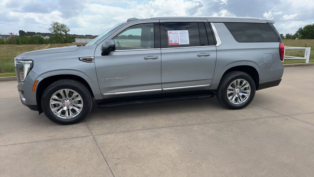 This 2025 GMC Yukon XL Denali in Sterling Metallic comes with the following features: EcoTec3 6.2L V8 10-Speed Automatic with Overdrive 4WD License Plate Front Mounting Package, Preferred Equipment Group 5SA (15" Diagonal Multi-Color Head-Up Display, 4-Way Power Driver Lumbar Seat Adjuster, 4-Way Power Front Passenger Lumbar Seat Adjuster, AutoSense Hands-Free Power Liftgate, Bright Front and Rear Door Sill Plates, Dual Exhaust System, Galvano Bodyside Moldings, Magnetic Ride Control Suspension, Perforated Heather and Ventilated Driver and Front Passenger Seats, Power Release 2nd Row Bucket Seats, Power Tilt and Telescopic Steering Column, and Wheels: 20" x 9" 6-Spoke Polished Aluminum), 10 Speakers, 3.23 Rear Axle Ratio, 3rd row seats: split-bench, 4-Wheel Disc Brakes, ABS brakes, Adaptive suspension, Air Conditioning, Alloy wheels, AM/FM radio: SiriusXM with 360L, Apple CarPlay/Android Auto, Audio memory, Auto High-beam Headlights, Auto-dimming door mirrors, Auto-dimming Rear-View mirror, Auto-leveling suspension, Automatic temperature control, Bodyside moldings, Bose 10-Speaker Surround with CenterPoint, Brake assist, Bumpers: body-color, Compass, Delay-off headlights, Deleted OnStar Basics, Driver door bin, Driver vanity mirror, Dual front impact airbags, Dual front side impact airbags, Electronic Stability Control, Emergency communication system: OnStar and GMC connected services capable, Exterior Parking Camera Rear, Four wheel independent suspension, Front anti-roll bar, Front Bucket Seats, Front Center Armrest, Front dual zone A/C, Front fog lights, Front reading lights, Fully automatic headlights, Garage door transmitter, Heads-Up Display, Heated door mirrors, Heated Driver and Front Passenger Seats, Heated front seats, Heated rear seats, Heated steering wheel, Illuminated entry, Low tire pressure warning, Memory seat, Navigation system: GMC Connected Navigation, Occupant sensing airbag, Outside temperature display, Overhead airbag, Overhead console, Panic alarm, Passenger door bin, Passenger vanity mirror, Perforated Leather Seating Surfaces, Power door mirrors, Power driver seat, Power Liftgate, Power passenger seat, Power steering, Power windows, Radio: 16.8" Diagonal Premium GMC Infotainment System, Rain sensing wipers, Rear air conditioning, Rear anti-roll bar, Rear reading lights, Rear window defroster, Rear window wiper, Remote keyless entry, Security system, SiriusXM with 360L, Speed control, Speed-sensing steering, Split folding rear seat, Spoiler, Steering wheel memory, Steering wheel mounted audio controls, Tachometer, Telescoping steering wheel, Tilt steering wheel, Traction control, Trip computer, Turn signal indicator mirrors, Variably intermittent wipers, Ventilated front seats, and Voltmeter.