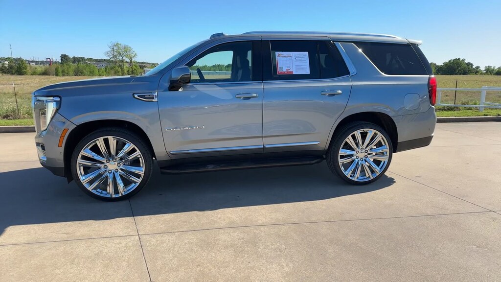 This 2025 GMC Yukon Denali in Sterling Metallic comes with the following features: EcoTec3 6.2L V8 10-Speed Automatic with Overdrive 4WD License Plate Front Mounting Package, Preferred Equipment Group 5SA (15" Diagonal Multi-Color Head-Up Display, 4-Way Power Driver Lumbar Seat Adjuster, 4-Way Power Front Passenger Lumbar Seat Adjuster, AutoSense Hands-Free Power Liftgate, Bright Front and Rear Door Sill Plates, Dual Exhaust System, Galvano Bodyside Moldings, Magnetic Ride Control Suspension, Perforated Heather and Ventilated Driver and Front Passenger Seats, Power Release 2nd Row Bucket Seats, Power Tilt and Telescopic Steering Column, and Wheels: 20" x 9" 6-Spoke Polished Aluminum), 10 Speakers, 3 Years of OnStar Services/Safety Services, 3.23 Rear Axle Ratio, 3rd row seats: split-bench, 4-Wheel Disc Brakes, ABS brakes, Adaptive suspension, Air Conditioning, Alloy wheels, AM/FM radio: SiriusXM with 360L, Apple CarPlay/Android Auto, Audio memory, Auto High-beam Headlights, Auto-dimming door mirrors, Auto-dimming Rear-View mirror, Auto-leveling suspension, Automatic temperature control, Bodyside moldings, Bose 10-Speaker Surround with CenterPoint, Brake assist, Bumpers: body-color, Compass, Delay-off headlights, Deleted OnStar Basics, Driver door bin, Driver vanity mirror, Dual front impact airbags, Dual front side impact airbags, Electronic Stability Control, Emergency communication system: OnStar and GMC connected services capable, Exterior Parking Camera Rear, Four wheel independent suspension, Front anti-roll bar, Front Bucket Seats, Front Center Armrest, Front dual zone A/C, Front fog lights, Front reading lights, Fully automatic headlights, Garage door transmitter, Heads-Up Display, Heated door mirrors, Heated Driver and Front Passenger Seats, Heated front seats, Heated rear seats, Heated steering wheel, Illuminated entry, Low tire pressure warning, Memory seat, Navigation system: GMC Connected Navigation, Occupant sensing airbag, Outside temperature display, Overhead airbag, Overhead console, Panic alarm, Passenger door bin, Passenger vanity mirror, Perforated Leather Seating Surfaces, Power door mirrors, Power driver seat, Power Liftgate, Power passenger seat, Power steering, Power windows, Radio: 16.8" Diagonal Premium GMC Infotainment System, Rain sensing wipers, Rear air conditioning, Rear anti-roll bar, Rear reading lights, Rear window defroster, Rear window wiper, Remote keyless entry, Security system, SiriusXM with 360L, Speed control, Speed-sensing steering, Split folding rear seat, Spoiler, Steering wheel memory, Steering wheel mounted audio controls, Tachometer, Telescoping steering wheel, Tilt steering wheel, Traction control, Trip computer, Turn signal indicator mirrors, Variably intermittent wipers, Ventilated front seats, and Voltmeter.