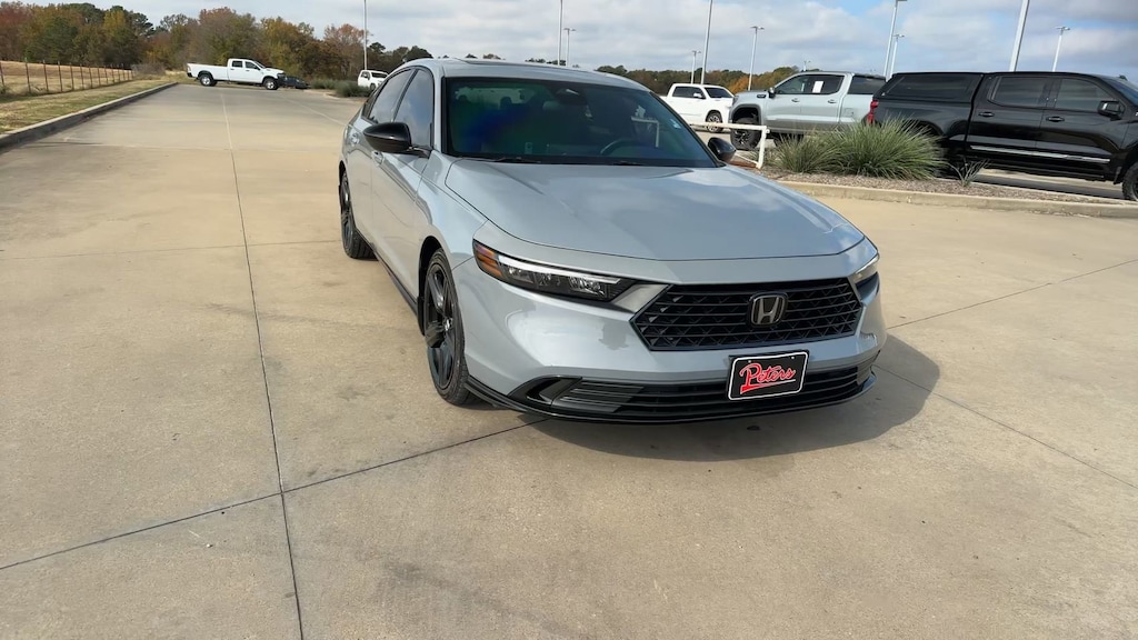 This 2024 Honda Accord Hybrid Sport-L in Gray comes with the following features: 2.0L 16V DOHC eCVT FWD 4-Wheel Disc Brakes, 8 Speakers, ABS brakes, Adaptive Cruise Control: Adaptive Cruise Control (ACC) with Low-Speed Follow, Air Conditioning, Alloy wheels, AM/FM radio, Apple CarPlay/Android Auto, Auto High-beam Headlights, Automatic temperature control, Blind Spot Information (BSI) System warning, Brake assist, Bumpers: body-color, Compass, Delay-off headlights, Driver door bin, Driver vanity mirror, Dual front impact airbags, Dual front side impact airbags, Electronic Stability Control, Emergency communication system: HondaLink, Exterior Parking Camera Rear, Four wheel independent suspension, Front anti-roll bar, Front Bucket Seats, Front Center Armrest, Front dual zone A/C, Front reading lights, Fully automatic headlights, Heated Front Bucket Seats, Heated front seats, Illuminated entry, Knee airbag, Lane departure: Lane Keeping Assist System (LKAS) active, Leather Shift Knob, Leather steering wheel, Leather-Trimmed Seat Trim, Low tire pressure warning, Memory seat, Occupant sensing airbag, Outside temperature display, Overhead airbag, Overhead console, Panic alarm, Passenger door bin, Passenger vanity mirror, Power door mirrors, Power driver seat, Power moonroof, Power passenger seat, Power steering, Power windows, Radio data system, Radio: 180-Watt Audio System, Rear anti-roll bar, Rear reading lights, Rear seat center armrest, Rear side impact airbag, Rear window defroster, Remote keyless entry, Security system, Speed control, Speed-sensing steering, Speed-Sensitive Wipers, Split folding rear seat, Spoiler, Steering wheel mounted audio controls, Telescoping steering wheel, Tilt steering wheel, Traction control, Trip computer, Variably intermittent wipers, and Wheels: 19" x 8.5J Matte Berlina Black.
