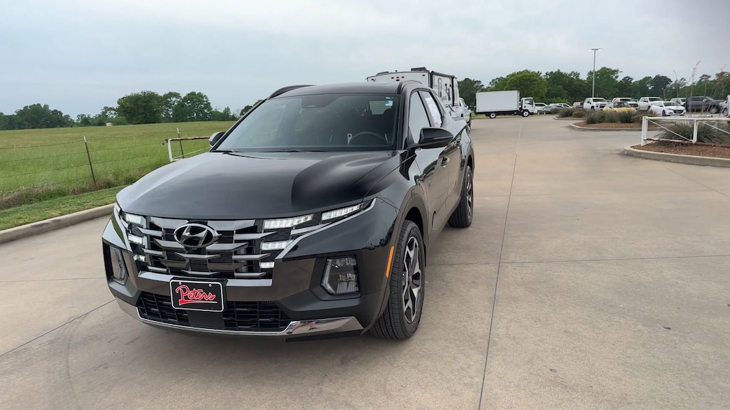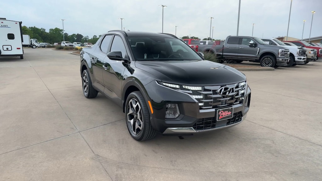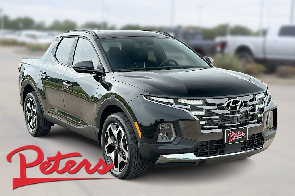 This 2024 Hyundai Santa Cruz Limited in Phantom Black comes with the following features: 2.5L I4 Shiftronic AWD Option Group 01, 3.316 Axle Ratio, 4-Wheel Disc Brakes, 8 Speakers, ABS brakes, Air Conditioning, Alloy wheels, AM/FM radio: SiriusXM, Apple CarPlay & Android Auto, Auto High-beam Headlights, Auto-dimming Rear-View mirror, Auto-leveling suspension, Automatic temperature control, Bed Cargo Net, Brake assist, Bumpers: body-color, Carpeted Floor Mats, Delay-off headlights, Driver door bin, Driver vanity mirror, Dual front impact airbags, Dual front side impact airbags, Electronic Stability Control, Emergency communication system: Bluelink+, Exterior Parking Camera Rear, First Aid Kit, Four wheel independent suspension, Front anti-roll bar, Front Bucket Seats, Front Center Armrest, Front dual zone A/C, Front reading lights, Fully automatic headlights, Garage door transmitter: HomeLink, Heated & Ventilated Front Bucket Seats, Heated door mirrors, Heated front seats, Heated steering wheel, Illuminated entry, Leather Shift Knob, Leather steering wheel, Leather-Trimmed Seats, Low tire pressure warning, Mud Guards, Navigation System, Occupant sensing airbag, Outside temperature display, Overhead airbag, Overhead console, Panic alarm, Passenger door bin, Passenger vanity mirror, Power door mirrors, Power driver seat, Power moonroof, Power steering, Power windows, Radio data system, Radio: AM/FM/HD w/Bose Premium Audio System, Rain sensing wipers, Rear anti-roll bar, Rear side impact airbag, Rear step bumper, Rear window defroster, Remote keyless entry, Security system, Speed control, Speed-sensing steering, Split folding rear seat, Spoiler, Steering wheel mounted audio controls, Tachometer, Telescoping steering wheel, Tilt steering wheel, Traction control, Trip computer, Turn signal indicator mirrors, Variably intermittent wipers, Ventilated front seats, Wheel Locks, and Wheels: 20" x 7.5J Alloy.