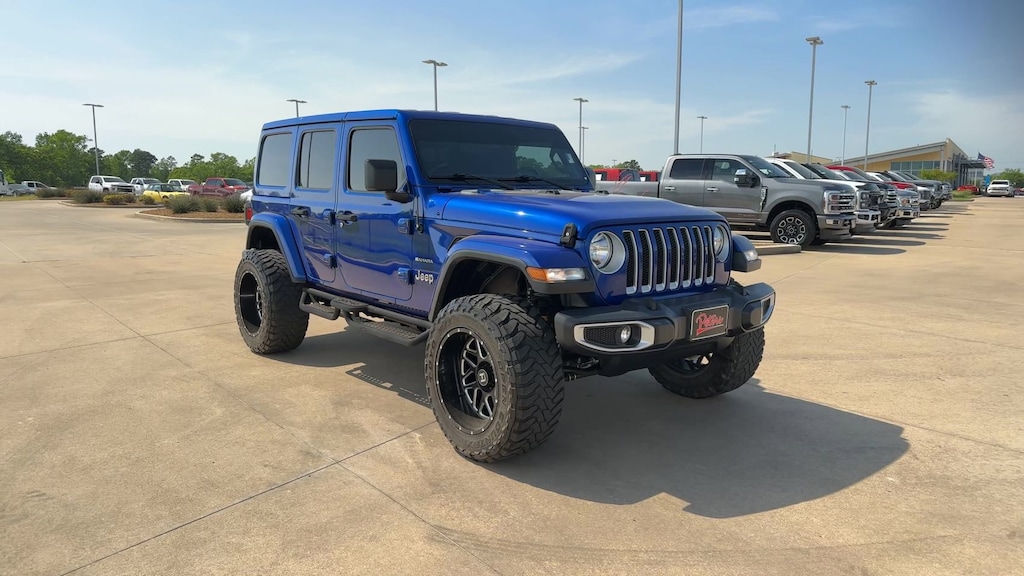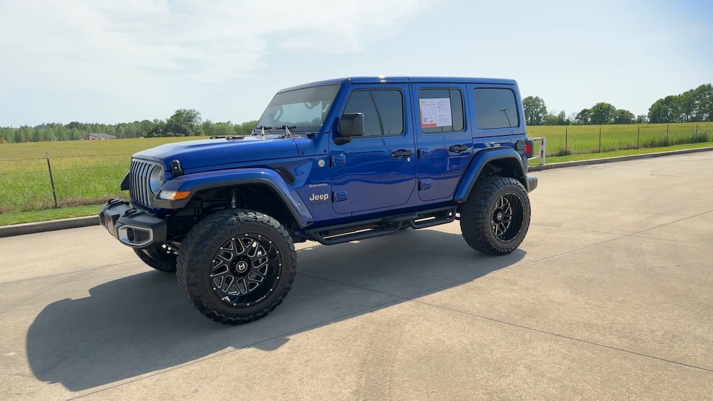 This 2020 Jeep Wrangler Unlimited Sahara in Ocean Blue Metallic Clearcoat comes with the following features: 2.0L I4 DOHC 8-Speed Automatic 4WD 8.4" Radio & Premium Audio Group (1-Year SiriusXM Guardian Trial, 4G LTE Wi-Fi Hot Spot, Alpine Premium Audio System, and GPS Navigation), 1-Year SiriusXM Radio Service, 3.45 Rear Axle Ratio, 4-Wheel Disc Brakes, 8 Speakers, ABS brakes, Air Conditioning, Alloy wheels, AM/FM radio: SiriusXM, Apple CarPlay, Apple CarPlay/Android Auto, Automatic temperature control, Aux Battery, Body Color 3-Piece Hard Top, Brake assist, Cloth Low-Back Bucket Seats, Compass, Delay-off headlights, Driver door bin, Driver vanity mirror, Dual front impact airbags, Dual front side impact airbags, Electronic Stability Control, Front anti-roll bar, Front Bucket Seats, Front Center Armrest w/Storage, Front dual zone A/C, Front fog lights, Front reading lights, Fully automatic headlights, Garage door transmitter, Google Android Auto, GPS Antenna Input, Heated door mirrors, Heavy Duty Suspension w/Gas Shocks, Illuminated entry, Integrated roll-over protection, Integrated Voice Command w/Bluetooth, Leather steering wheel, Low tire pressure warning, Non-Lock Fuel Cap w/o Discriminator, Occupant sensing airbag, Outside temperature display, Panic alarm, ParkView Rear Back-Up Camera, Passenger door bin, Passenger vanity mirror, Power door mirrors, Power steering, Power windows, Radio data system, Radio: Uconnect 4 w/7" Display, Rear anti-roll bar, Rear reading lights, Remote keyless entry, Remote Start System, Security system, Speed control, Split folding rear seat, Steering wheel mounted audio controls, Stop-Start Dual Battery System, Tachometer, Telescoping steering wheel, Tilt steering wheel, Traction control, Trip computer, Variably intermittent wipers, Voltmeter, and Wheels: 18" x 7.5" Polished w/Gray Spokes.