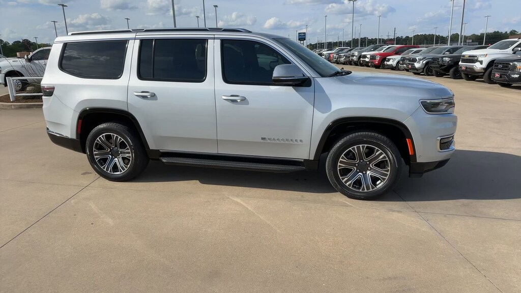 This 2022 Jeep Wagoneer Series III in Silver Zynith comes with the following features: 5.7L V8 8-Speed Automatic 4WD Flexible Seating Group (7-Passenger Seating, Floor Console w/Cupholder, and Power Tip/Slide Recline 2nd Row Buckets), Quick Order Package 22N, 10 Speakers, 3.21 Rear Axle Ratio, 3rd row seats: bench, 4-Wheel Disc Brakes, ABS brakes, Adjustable pedals, Air Conditioning, Alloy wheels, AM/FM radio: SiriusXM with 360L, Anti-whiplash front head restraints, Audio memory, Auto High-beam Headlights, Auto-dimming door mirrors, Auto-dimming Rear-View mirror, Auto-leveling suspension, Automatic temperature control, Brake assist, Bumpers: body-color, Compass, Delay-off headlights, Driver door bin, Driver vanity mirror, Driver's Seat Mounted Armrest, Dual front impact airbags, Dual front side impact airbags, Electronic Stability Control, Exterior Parking Camera Rear, Four wheel independent suspension, Front anti-roll bar, Front Bucket Seats, Front Center Armrest w/Storage, Front dual zone A/C, Front fog lights, Front reading lights, Fully automatic headlights, Garage door transmitter, Genuine wood console insert, Genuine wood dashboard insert, Genuine wood door panel insert, Heads-Up Display, Heated door mirrors, Heated front seats, Heated rear seats, Heated steering wheel, Illuminated entry, Knee airbag, Leather Trimmed Bucket Seats, Low tire pressure warning, Memory seat, Navigation System, Normal Duty Suspension, Occupant sensing airbag, Outside temperature display, Overhead airbag, Overhead console, Panic alarm, Passenger door bin, Passenger seat mounted armrest, Passenger vanity mirror, Pedal memory, Power adjustable front head restraints, Power door mirrors, Power driver seat, Power Liftgate, Power passenger seat, Power steering, Power windows, Radio data system, Radio: Uconnect 5 Nav w/10.1" Display, Rain sensing wipers, Rear air conditioning, Rear anti-roll bar, Rear dual zone A/C, Rear reading lights, Rear seat center armrest, Rear window defroster, Rear window wiper, Reclining 3rd row seat, Remote keyless entry, Security system, Speed control, Speed-sensing steering, Speed-Sensitive Wipers, Split folding rear seat, Steering wheel memory, Steering wheel mounted audio controls, Tachometer, Telescoping steering wheel, Tilt steering wheel, Traction control, Trip computer, Turn signal indicator mirrors, Variably intermittent wipers, Ventilated front seats, Voltmeter, and Wheels: 20" x 9.0" Premium 2 Aluminum.