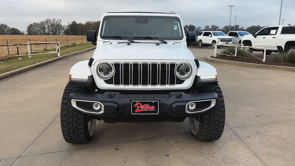 This 2024 Jeep Wrangler Sahara in Bright White Clearcoat comes with the following features: 3.6L V6 24V VVT 8-Speed Automatic 4WD Quick Order Package 24G Sahara, Safety Group (Auto High Beam Headlamp Control, Blind Spot & Cross Path Detection, and ParkSense Rear Park Assist System), Technology Group (12.3" Touchscreen Display, 4G LTE Wi-Fi Hot Spot, Alpine Premium Audio System, Apple CarPlay, Auto-Dimming Rear-View Mirror, Connected Travel & Traffic Services, Connectivity - US/Canada, Disassociated Touchscreen Display, Google Android Auto, GPS Navigation, HD Radio, Integrated Center Stack Radio, Integrated Off-Road Camera, Integrated Voice Command w/Bluetooth, Radio: Uconnect 5 Nav w/12.3" Display, SiriusXM Radio Service, SiriusXM w/360L, and Universal Garage Door Opener), Trailer Tow & Aux Switch Group (7 & 4 Pin Wiring Harness, Auxiliary Switches, and Class II Receiver Hitch), Power Top Quarter Window Storage Bag, Rear Window Defroster, Rear Window Wiper/Washer, Removable Rear Quarter Windows, Sky 1-Touch Power Top, 110 MPH Vehicle Max Speed Calibration, 3.45 Overall Top Gear Ratio, 4-Wheel Disc Brakes, 8 Speakers, ABS brakes, Air Conditioning, Alloy wheels, AM/FM radio: SiriusXM, Apple CarPlay/Android Auto, Automatic temperature control, Aux Battery, Brake assist, Cloth Low-Back Bucket Seats, Compass, Delay-off headlights, Driver door bin, Driver vanity mirror, Dual front impact airbags, Dual front side impact airbags, Electronic Stability Control, Emergency communication system: Jeep Connect, Front anti-roll bar, Front Bucket Seats, Front Center Armrest w/Storage, Front dual zone A/C, Front fog lights, Front License Plate Bracket, Front reading lights, Fully automatic headlights, Heated door mirrors, Heated front seats, Heated steering wheel, Heavy Duty Suspension w/Gas Shocks, Illuminated entry, Integrated roll-over protection, Low tire pressure warning, MOPAR Hinge-Gate Reinforcement, Non-Lock Fuel Cap w/o Discriminator, Occupant sensing airbag, Outside temperature display, Overhead airbag, Panic alarm, ParkView Rear Back-Up Camera, Passenger door bin, Passenger vanity mirror, Power door mirrors, Power steering, Power windows, Radio data system, Radio: Uconnect 5 w/12.3" Display, Rear anti-roll bar, Rear reading lights, Remote keyless entry, Security system, Speed control, Split folding rear seat, Steering wheel mounted audio controls, Stop-Start Dual Battery System, Tachometer, Telescoping steering wheel, Tilt steering wheel, Traction control, Trip computer, Variably intermittent wipers, Voltmeter, and Wheels: 18" x 7.5" Machine/Painted Gray.