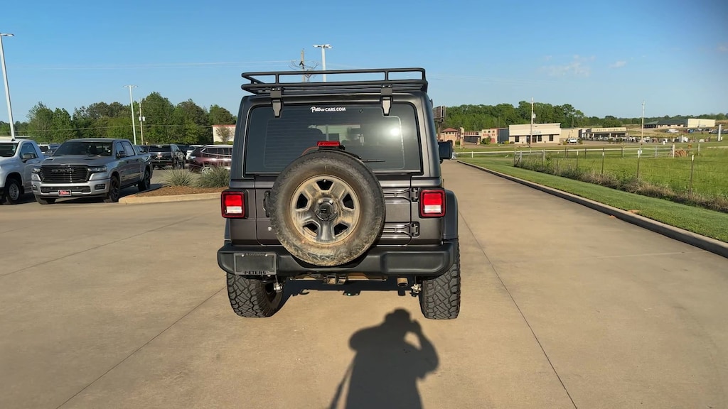 This 2024 Jeep Wrangler Sport in Granite Crystal Metallic Clearcoat comes with the following features: 2.0L I4 DOHC 8-Speed Automatic 4WD Quick Order Package 22B Sport, FCA US LLC Certified Pre-Owned Certified, 110 MPH Vehicle Max Speed Calibration, 3.45 Overall Top Gear Ratio, 4-Wheel Disc Brakes, 8 Speakers, ABS brakes, AM/FM radio: SiriusXM with 360L, Apple CarPlay/Android Auto, Auxiliary Battery, Black 3-Piece Hard Top, Brake assist, Cloth Low-Back Bucket Seats, Compass, Delay-off headlights, Driver door bin, Driver vanity mirror, Dual front impact airbags, Dual front side impact airbags, Electronic Stability Control, Front anti-roll bar, Front Bucket Seats, Front Center Armrest w/Storage, Front fog lights, Front reading lights, Integrated roll-over protection, Low tire pressure warning, MOPAR Satin Black Grille, Non-Locking Fuel Cap w/o Discriminator, Normal Duty Suspension, Occupant sensing airbag, Outside temperature display, Overhead airbag, ParkView Rear Back-Up Camera, Passenger door bin, Passenger vanity mirror, Power steering, Radio data system, Radio: Uconnect 5 w/12.3" Display, Rear anti-roll bar, Rear reading lights, Rear Window Defroster, Rear Window Wiper/Washer, Speed control, Start-Stop Dual Battery System, Steering wheel mounted audio controls, Tachometer, Telescoping steering wheel, Tilt steering wheel, Traction control, Trip computer, Variably intermittent wipers, and Wheels: 17" x 7.5" Black Steel Styled.