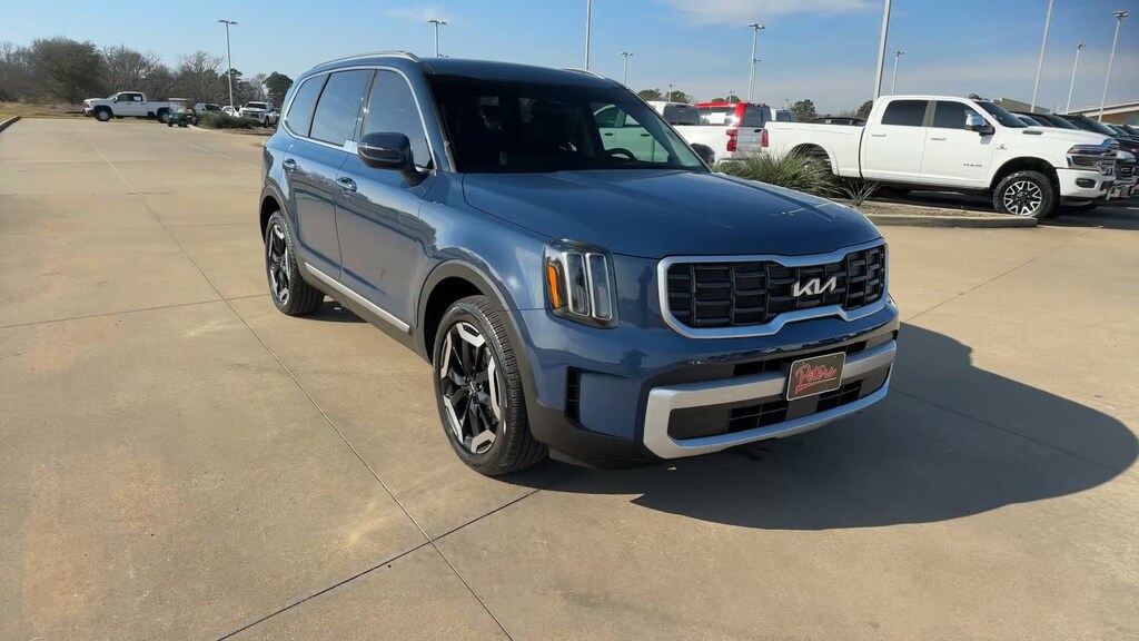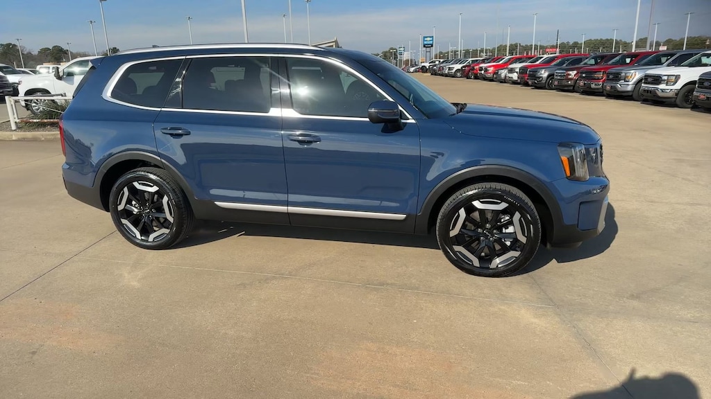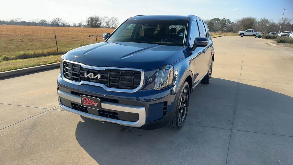 This 2024 Kia Telluride S in Midnight Lake Blue comes with the following features: 3.8L V6 DOHC 8-Speed Automatic AWD S Sunroof Package (Power Sunroof w/Sunshade), 3.648 Axle Ratio, 3rd row seats: split-bench, 4-Wheel Disc Brakes, 6 Speakers, ABS brakes, Air Conditioning, Alloy wheels, AM/FM radio: SiriusXM, Apple CarPlay & Android Auto, Auto High-beam Headlights, Automatic temperature control, Brake assist, Bumpers: body-color, Cargo Tray Seat Back, Carpet Floor Mats, Delay-off headlights, Driver door bin, Driver vanity mirror, Dual front impact airbags, Dual front side impact airbags, Electronic Stability Control, Emergency communication system: 911 Connect, Exterior Parking Camera Rear, Four wheel independent suspension, Front anti-roll bar, Front Bucket Seats, Front Center Armrest, Front dual zone A/C, Front reading lights, Fully automatic headlights, Heated door mirrors, Heated Front Bucket Seats, Heated front seats, Illuminated entry, Knee airbag, Leather Shift Knob, Leather steering wheel, Low tire pressure warning, Navigation System, Occupant sensing airbag, Outside temperature display, Overhead airbag, Overhead console, Panic alarm, Passenger door bin, Passenger vanity mirror, Power door mirrors, Power driver seat, Power steering, Power windows, Radio data system, Radio: AM/FM Display Audio System, Rear air conditioning, Rear anti-roll bar, Rear audio controls, Rear reading lights, Rear side impact airbag, Rear window defroster, Rear window wiper, Reclining 3rd row seat, Remote keyless entry, Roof rack: rails only, Security system, Smart Key w/ Push Button and Remote Start, Speed control, Speed-sensing steering, Split folding rear seat, Spoiler, Steering wheel mounted audio controls, SynTex Synthetic Leather Seat Trim, Tachometer, Telescoping steering wheel, Tilt steering wheel, Traction control, Trip computer, Turn signal indicator mirrors, Variably intermittent wipers, and Wheels: 20" x 7.5" Black Finish.