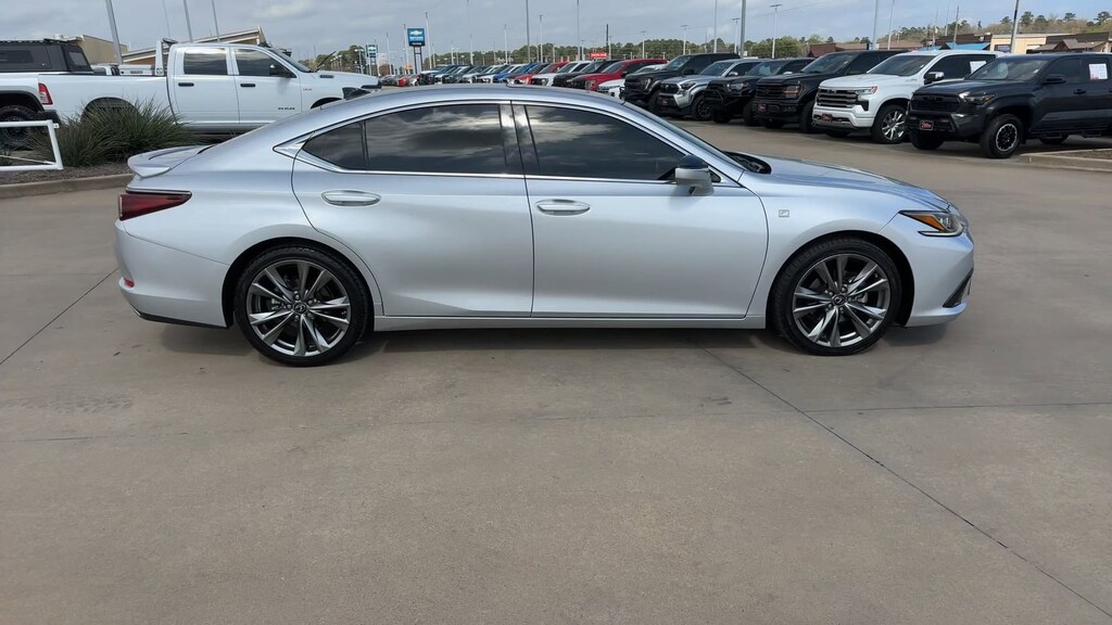 This 2020 Lexus ES 350 F Sport in Silver Lining Metallic comes with the following features: 3.5L V6 DOHC Dual VVT-i 24V 8-Speed Automatic FWD 10 Speakers, 10-Way Power Adjustable F SPORT Front Seats, 4-Wheel Disc Brakes, ABS brakes, Air Conditioning, Alloy wheels, AM/FM radio: SiriusXM, Auto High-beam Headlights, Auto tilt-away steering wheel, Auto-dimming door mirrors, Auto-dimming Rear-View mirror, Automatic temperature control, Brake assist, Bumpers: body-color, CD player, Compass, Delay-off headlights, Driver door bin, Driver Seat Memory, Driver vanity mirror, Dual front impact airbags, Dual front side impact airbags, Electronic Stability Control, Emergency communication system: Lexus Enform Safety Connect, Exterior Parking Camera Rear, F SPORT NuLuxe Seat Trim, Four wheel independent suspension, Front anti-roll bar, Front Bucket Seats, Front Center Armrest, Front dual zone A/C, Front reading lights, Fully automatic headlights, Garage door transmitter: HomeLink, Heated & Ventilated Seats, Heated door mirrors, Heated front seats, Illuminated entry, Knee airbag, Leather Shift Knob, Leather steering wheel, Low tire pressure warning, Memory seat, Occupant sensing airbag, Outside temperature display, Overhead airbag, Overhead console, Panic alarm, Passenger door bin, Passenger vanity mirror, Power door mirrors, Power driver seat, Power moonroof, Power passenger seat, Power steering, Power Tilt/Telescoping Steering Wheel w/Memory, Power windows, Radio data system, Radio: Lexus Premium Sound System w/10 Speakers, Rain Sensing Wipers, Rain sensing wipers, Rear anti-roll bar, Rear reading lights, Rear seat center armrest, Rear side impact airbag, Rear window defroster, Remote keyless entry, Security system, Speed control, Speed-sensing steering, Sport steering wheel, Steering wheel memory, Steering wheel mounted audio controls, Tachometer, Telescoping steering wheel, Tilt steering wheel, Traction control, Trip computer, Turn signal indicator mirrors, Variably intermittent wipers, Ventilated front seats, and Wheels: 19" x 8J Split Spoke Aluminum Alloy.