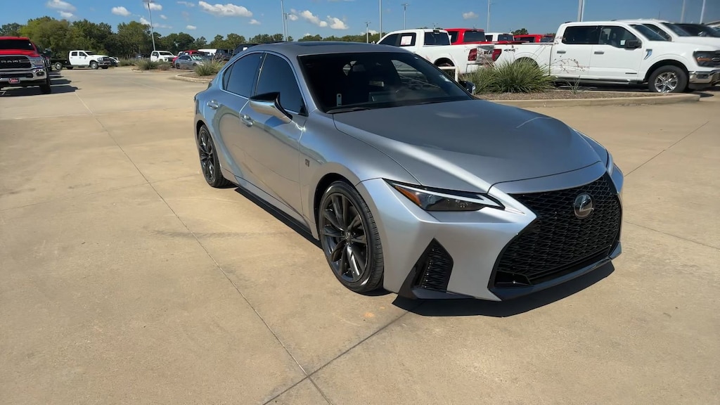 This 2025 Lexus IS 350 F SPORT Design in Silver comes with the following features: 3.5L V6 DOHC Dual VVT-i 24V 8-Speed Automatic RWD 10 Speakers, 4-Wheel Disc Brakes, ABS brakes, Air Conditioning, Alloy wheels, AM/FM radio: SiriusXM, Apple CarPlay/Android Auto, Auto High-beam Headlights, Auto-dimming door mirrors, Automatic temperature control, Brake assist, Bumpers: body-color, CD player, Compass, Delay-off headlights, Driver door bin, Driver vanity mirror, Dual front impact airbags, Dual front side impact airbags, Electronic Stability Control, Emergency communication system: Safety Connect (3-year trial), Exterior Parking Camera Rear, Four wheel independent suspension, Front anti-roll bar, Front Bucket Seats, Front Center Armrest, Front dual zone A/C, Front fog lights, Front reading lights, Fully automatic headlights, Heated door mirrors, Heated F SPORT Seats, Heated front seats, Heated steering wheel, Illuminated entry, Knee airbag, Leather Shift Knob, Leather steering wheel, Low tire pressure warning, Occupant sensing airbag, Outside temperature display, Overhead airbag, Overhead console, Panic alarm, Passenger door bin, Passenger vanity mirror, Perforated NuLuxe Seat Trim, Power door mirrors, Power driver seat, Power passenger seat, Power steering, Power windows, Radio data system, Radio: Multimedia System w/8" Color Touchscreen, Rear anti-roll bar, Rear reading lights, Rear side impact airbag, Rear window defroster, Remote keyless entry, Security system, Speed control, Speed-sensing steering, Speed-Sensitive Wipers, Split folding rear seat, Spoiler, Steering wheel mounted audio controls, Tachometer, Telescoping steering wheel, Tilt steering wheel, Traction control, Trip computer, Turn signal indicator mirrors, Variably intermittent wipers, and Wheels: 19" Split-5-Spoke Alloy.