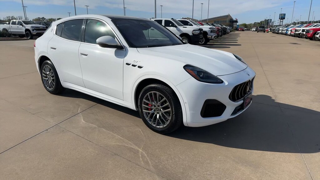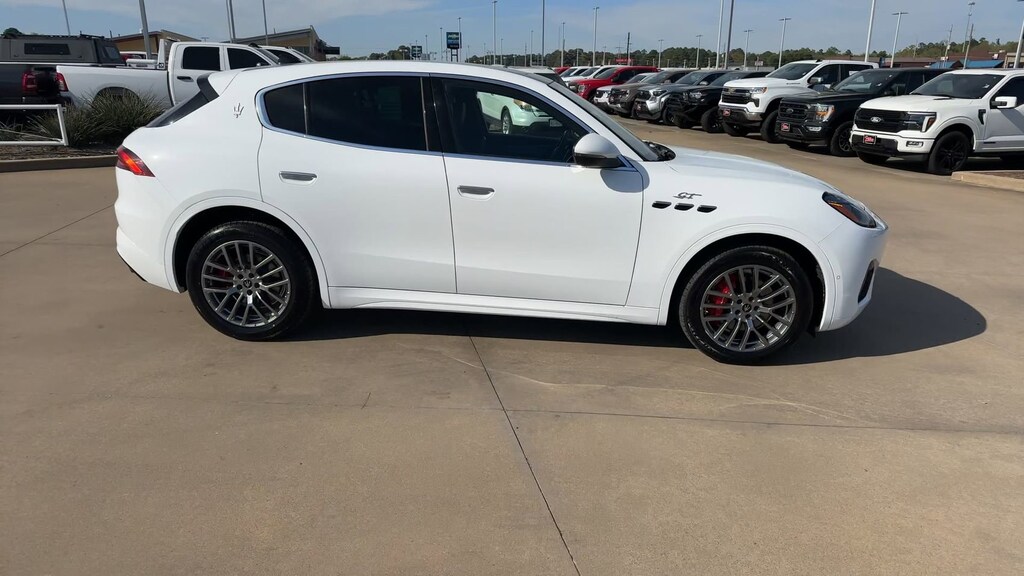 This 2023 Maserati Grecale GT in White comes with the following features: I4 ZF 8-Speed Automatic AWD 14 Speakers, 3.27 Axle Ratio, 4-Wheel Disc Brakes, ABS brakes, Air Conditioning, Alloy wheels, AM/FM radio: SiriusXM, Apple CarPlay/Android Auto, Auto High-beam Headlights, Auto-dimming door mirrors, Auto-dimming Rear-View mirror, Automatic temperature control, Brake assist, Bumpers: body-color, Compass, Delay-off headlights, Driver door bin, Driver vanity mirror, Dual front impact airbags, Dual front side impact airbags, Electronic Stability Control, Emergency communication system: Maserati Connect, Exterior Parking Camera Rear, Four wheel independent suspension, Front anti-roll bar, Front Bucket Seats, Front Center Armrest, Front dual zone A/C, Front reading lights, Garage door transmitter: HomeLink, Heated door mirrors, Illuminated entry, Leather Seat Upholstery, Leather steering wheel, Low tire pressure warning, Memory seat, Navigation System, Occupant sensing airbag, Outside temperature display, Overhead airbag, Overhead console, Passenger door bin, Passenger vanity mirror, Power door mirrors, Power driver seat, Power Liftgate, Power passenger seat, Power steering, Power windows, Radio data system, Radio: Sonus Faber 860 Watts Premium Audio System, Rain sensing wipers, Rear anti-roll bar, Rear fog lights, Rear reading lights, Rear seat center armrest, Rear window defroster, Rear window wiper, Remote keyless entry, Security system, Speed control, Speed-sensing steering, Speed-Sensitive Wipers, Split folding rear seat, Spoiler, Steering wheel memory, Steering wheel mounted audio controls, Tachometer, Telescoping steering wheel, Tilt steering wheel, Traction control, Trip computer, Turn signal indicator mirrors, Variably intermittent wipers, Voltmeter, and Wheels: 19" Gloss Dark Thetis.