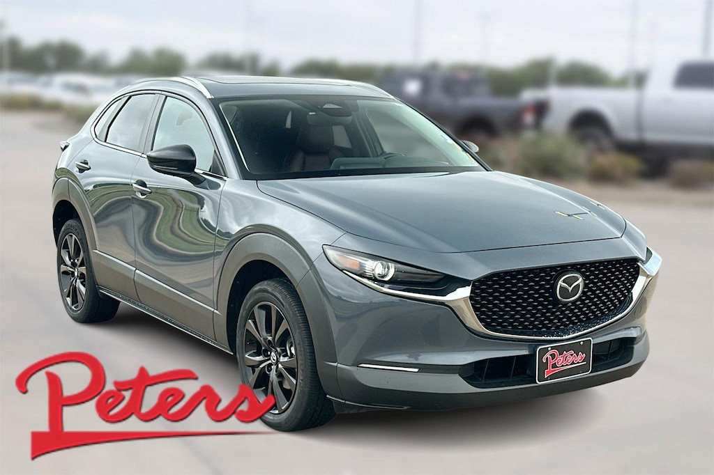 This 2024 Mazda CX-30 2.5 S Carbon Edition in Polymetal Gray Metallic comes with the following features: SKYACTIV® 2.5L 4-Cylinder DOHC 16V 6-Speed Automatic AWD 4-Wheel Disc Brakes, 4.095 Axle Ratio, 8 Speakers, ABS brakes, Air Conditioning, Alloy wheels, AM/FM radio, AppLink/Apple CarPlay and Android Auto, Auto High-beam Headlights, Automatic temperature control, Brake assist, Bumpers: body-color, Compass, Delay-off headlights, Driver door bin, Driver vanity mirror, Dual front impact airbags, Dual front side impact airbags, Electronic Stability Control, Emergency communication system: Mazda Connected Services (3-year complimentary trial included), Exterior Parking Camera Rear, Front anti-roll bar, Front Bucket Seats, Front Center Armrest, Front dual zone A/C, Front reading lights, Front wheel independent suspension, Fully automatic headlights, Heated door mirrors, Heated Front Bucket Seats, Heated front seats, Illuminated entry, Knee airbag, Leather Seat Trim, Leather Shift Knob, Leather steering wheel, Low tire pressure warning, MAZDA CONNECT Infotainment System, Memory seat, Occupant sensing airbag, Outside temperature display, Overhead airbag, Overhead console, Panic alarm, Passenger door bin, Passenger vanity mirror, Power door mirrors, Power driver seat, Power moonroof, Power steering, Power windows, Radio data system, Radio: AM/FM/HD Audio System, Rain sensing wipers, Rear seat center armrest, Rear side impact airbag, Rear window defroster, Rear window wiper, Remote keyless entry, Speed control, Speed-sensing steering, Split folding rear seat, Spoiler, Steering wheel mounted audio controls, Tachometer, Telescoping steering wheel, Tilt steering wheel, Traction control, Trip computer, Turn signal indicator mirrors, Variably intermittent wipers, and Wheels: 18" x 7J Aluminum Alloy.