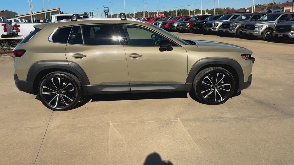 This 2024 Mazda CX-50 2.5 Turbo Premium Plus Package in Zircon Sand Metallic comes with the following features: 2.5L I4 Turbocharged DOHC 16V LEV3-ULEV70 227hp 6-Speed Automatic AWD Weather Package (Cargo Liner w/Seatback Protection), 12 Speakers, 20" x 8J Aluminum Alloy Wheels, 3.841 Axle Ratio, 4-Wheel Disc Brakes, ABS brakes, Air Conditioning, Alloy wheels, AM/FM radio: SiriusXM, AppLink/Apple CarPlay and Android Auto, Auto High-beam Headlights, Auto-dimming door mirrors, Auto-dimming Rear-View mirror, Automatic temperature control, Black Lug Nuts & Black Wheel Locks, Brake assist, Bumpers: body-color, Compass, Delay-off headlights, Driver door bin, Driver vanity mirror, Dual front impact airbags, Dual front side impact airbags, Electronic Stability Control, Emergency communication system: MAZDA CONNECT, Front anti-roll bar, Front Bucket Seats, Front Center Armrest, Front dual zone A/C, Front reading lights, Front wheel independent suspension, Fully automatic headlights, Garage door transmitter: HomeLink, Heads-Up Display, Heated & Ventilated Front Bucket Seats, Heated door mirrors, Heated front seats, Heated rear seats, Heated steering wheel, Illuminated entry, Knee airbag, Leather Seat Trim, Leather Shift Knob, Leather steering wheel, Low tire pressure warning, Memory seat, Navigation system: MAZDA CONNECT, Occupant sensing airbag, Outside temperature display, Overhead airbag, Overhead console, Panic alarm, Passenger door bin, Passenger vanity mirror, Power door mirrors, Power driver seat, Power Liftgate, Power moonroof, Power passenger seat, Power steering, Power windows, Radio data system, Radio: AM/FM/HD Audio System, Rain sensing wipers, Rear seat center armrest, Rear window defroster, Rear window wiper, Remote keyless entry, Silver Cross Bars, Speed control, Speed-sensing steering, Split folding rear seat, Spoiler, Steering wheel mounted audio controls, Tachometer, Telescoping steering wheel, Tilt steering wheel, Traction control, Trailer Hitch w/7-Pin Harness, Trip computer, Turn signal indicator mirrors, Variably intermittent wipers, Ventilated front seats, and Zircon Sand Metallic Paint Charge.