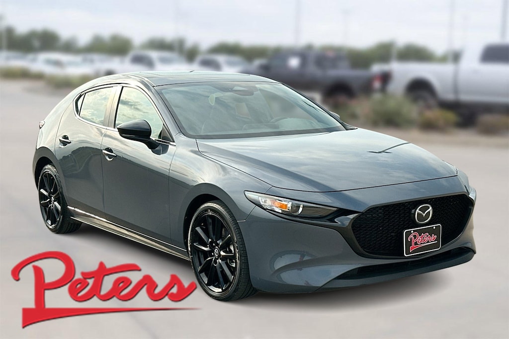 This 2024 Mazda Mazda3 2.5 S Carbon Edition in Polymetal Gray Metallic comes with the following features: SKYACTIV® 2.5L 4-Cylinder DOHC 16V 6-Speed Automatic AWD 4-Wheel Disc Brakes, 8 Speakers, ABS brakes, Air Conditioning, Alloy wheels, AM/FM radio, Auto High-beam Headlights, Automatic temperature control, Brake assist, Bumpers: body-color, Compass, Delay-off headlights, Driver door bin, Driver vanity mirror, Dual front impact airbags, Dual front side impact airbags, Electronic Stability Control, Emergency communication system: Mazda Connected Services (3-year complimentary trial included), Exterior Parking Camera Rear, Front anti-roll bar, Front Bucket Seats, Front Center Armrest, Front dual zone A/C, Front reading lights, Front wheel independent suspension, Fully automatic headlights, Heated door mirrors, Heated Front Bucket Seats, Heated front seats, Illuminated entry, Knee airbag, Leather Seat Trim, Leather Shift Knob, Leather steering wheel, Low tire pressure warning, MAZDA CONNECT Infotainment System, Memory seat, Occupant sensing airbag, Outside temperature display, Overhead airbag, Overhead console, Panic alarm, Passenger door bin, Passenger vanity mirror, Power door mirrors, Power driver seat, Power moonroof, Power steering, Power windows, Radio data system, Radio: AM/FM/HD Audio System, Rain sensing wipers, Rear seat center armrest, Rear side impact airbag, Rear window defroster, Rear window wiper, Remote keyless entry, Speed control, Speed-sensing steering, Split folding rear seat, Spoiler, Steering wheel mounted audio controls, Tachometer, Telescoping steering wheel, Tilt steering wheel, Traction control, Trip computer, Turn signal indicator mirrors, Variably intermittent wipers, and Wheels: 18" x 7J Aluminum Alloy.