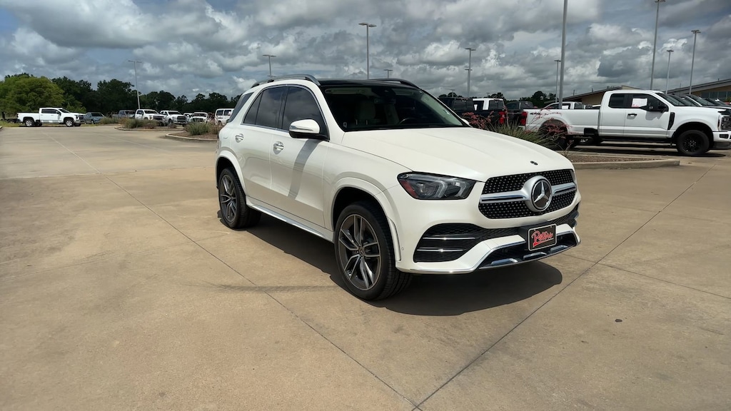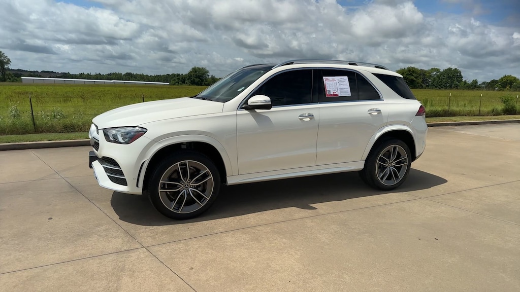 This 2021 Mercedes-Benz GLE GLE 450 4MATIC® in designo Diamond White Metallic comes with the following features: 3.0L I6 Turbo 9-Speed Automatic 4MATIC® AIRMATIC®Package (Active Damping System Plus and AIRMATIC®Suspension), AMG® Line Exterior (AMG® Bodystyling, AMG® Line Exterior (P31), Dual Exhaust Pipes, and Functional Sport Exhaust), Premium Package (115V Power Outlet, Burmester® Surround Sound System, Parking Assist Code, and Surround View System), 4-Way Lumbar Support, 4-Wheel Disc Brakes, 8 Speakers, ABS brakes, Aerial for GPS, Air Conditioning, Alloy wheels, AM/FM radio: SiriusXM, Android Auto®, Anti-whiplash front head restraints, Apple CarPlay®, Apple CarPlay®/Android Auto®, Auto tilt-away steering wheel, Auto-dimming door mirrors, Auto-dimming Rear-View mirror, Automatic temperature control, Axle Ratio: 3.27, Brake assist, Bumpers: body-color, Compass, Delay-off headlights, Driver door bin, Driver vanity mirror, Dual front impact airbags, Dual front side impact airbags, eCall Emergency System, Electronic Stability Control, Emergency communication system: eCall Emergency System, Exterior Parking Camera Rear, Four wheel independent suspension, Front anti-roll bar, Front Bucket Seats, Front Center Armrest, Front dual zone A/C, Front reading lights, Fully automatic headlights, Garage door transmitter: HomeLink, Genuine wood console insert, Genuine wood dashboard insert, Genuine wood door panel insert, HD Radio, Heated door mirrors, Heated Front Bucket Seats, Heated front seats, Heated Power Front Seats w/Driver Memory, Illuminated entry, Knee airbag, Leather steering wheel, Live Traffic, Low tire pressure warning, MB Navigation, MB-Tex Leatherette Seat Trim, MBUX Voice Control, Memory seat, Navigation Services, Navigation system: MBUX, Navigation Updates for 3 Years, Occupant sensing airbag, Outside temperature display, Overhead airbag, Panic alarm, Passenger door bin, Passenger vanity mirror, Power adjustable front head restraints, Power door mirrors, Power driver seat, Power Liftgate, Power moonroof, Power passenger seat, Power steering, Power windows, Premium audio system: MBUX, Radio data system, Radio: MBUX Multimedia System, Rain sensing wipers, Rear anti-roll bar, Rear fog lights, Rear reading lights, Rear seat center armrest, Rear window defroster, Rear window wiper, Remote keyless entry, Roof rack: rails only, Security system, SiriusXM Satellite Radio, Smartphone Integration, Speed control, Speed-sensing steering, Speed-Sensitive Wipers, Split folding rear seat, Spoiler, Steering wheel memory, Steering wheel mounted audio controls, Tachometer, Telescoping steering wheel, Tilt steering wheel, Traction control, Trip computer, Turn signal indicator mirrors, Weather band radio, Wheels: 19" Twin 5-Spoke, Wide Screen Media Display, and Wireless Charging.