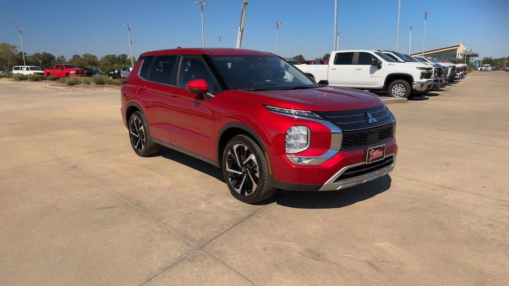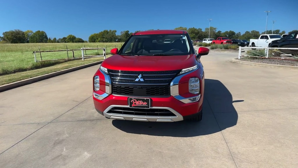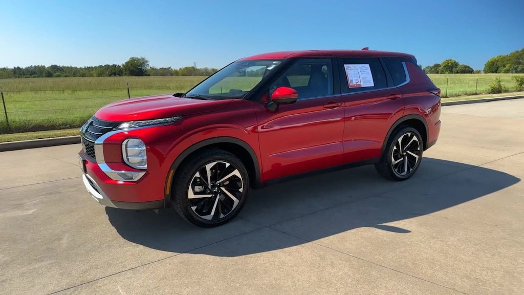 This 2023 Mitsubishi Outlander SE in Red comes with the following features: 2.5L 4-Cylinder DOHC CVT FWD ABS brakes, Active Cruise Control, Alloy wheels, Electronic Stability Control, Front dual zone A/C, Heated door mirrors, Heated Front Bucket Seats, Heated front seats, Illuminated entry, Low tire pressure warning, Navigation System, Power Liftgate, Remote keyless entry, Traction control, 3rd row seats: split-bench, 4-Wheel Disc Brakes, 5.694 Axle Ratio, 6 Speakers, Air Conditioning, AM/FM radio: SiriusXM, Android Auto & Apple CarPlay, Auto High-beam Headlights, Automatic temperature control, Brake assist, Bumpers: body-color, Driver door bin, Driver vanity mirror, Dual front impact airbags, Dual front side impact airbags, Emergency communication system: Mitsubishi Connect w/ 24-month trial, Exterior Parking Camera Rear, Four wheel independent suspension, Front anti-roll bar, Front Bucket Seats, Front Center Armrest w/Storage, Front fog lights, Front reading lights, Fully automatic headlights, Knee airbag, Leather Shift Knob, Leather steering wheel, Occupant sensing airbag, Outside temperature display, Overhead airbag, Overhead console, Panic alarm, Passenger door bin, Passenger vanity mirror, Power door mirrors, Power driver seat, Power steering, Power windows, Radio data system, Radio: AM/FM 9.0" Navigation w/Smartphone Link, Rain sensing wipers, Rear anti-roll bar, Rear seat center armrest, Rear side impact airbag, Rear window defroster, Rear window wiper, Reclining 3rd row seat, Security system, Speed control, Speed-Sensitive Wipers, Split folding rear seat, Spoiler, Steering wheel mounted audio controls, Synthetic Leather Seat Trim, Tachometer, Telescoping steering wheel, Tilt steering wheel, Trip computer, Turn signal indicator mirrors, Variably intermittent wipers, and Wheels: 20" Two-Tone Alloy.