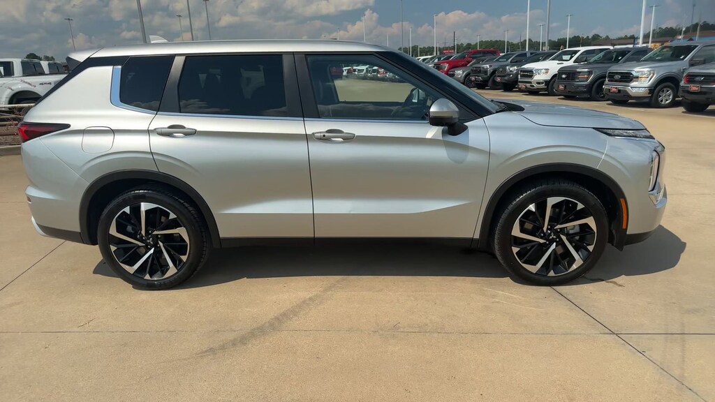 This 2024 Mitsubishi Outlander SE in Silver comes with the following features: 2.5L 4-Cylinder DOHC CVT FWD ABS brakes, Active Cruise Control, Alloy wheels, Electronic Stability Control, Front dual zone A/C, Heated door mirrors, Heated Front Bucket Seats, Heated front seats, Illuminated entry, Low tire pressure warning, Navigation System, Power Liftgate, Remote keyless entry, Traction control, 3rd row seats: split-bench, 4-Wheel Disc Brakes, 5.694 Axle Ratio, 6 Speakers, Air Conditioning, AM/FM radio: SiriusXM, Android Auto & Apple CarPlay, Auto High-beam Headlights, Automatic temperature control, Brake assist, Bumpers: body-color, Driver door bin, Driver vanity mirror, Dual front impact airbags, Dual front side impact airbags, Emergency communication system: Mitsubishi Connect w/ 24-month trial, Exterior Parking Camera Rear, Four wheel independent suspension, Front anti-roll bar, Front Bucket Seats, Front Center Armrest w/Storage, Front fog lights, Front reading lights, Fully automatic headlights, Knee airbag, Leather Shift Knob, Leather steering wheel, Occupant sensing airbag, Outside temperature display, Overhead airbag, Overhead console, Panic alarm, Passenger door bin, Passenger vanity mirror, Power door mirrors, Power driver seat, Power steering, Power windows, Radio data system, Radio: AM/FM 9.0" Navigation w/Smartphone Link, Rain sensing wipers, Rear anti-roll bar, Rear seat center armrest, Rear side impact airbag, Rear window defroster, Rear window wiper, Reclining 3rd row seat, Security system, Speed control, Speed-Sensitive Wipers, Split folding rear seat, Spoiler, Steering wheel mounted audio controls, Synthetic Leather Seat Trim, Tachometer, Telescoping steering wheel, Tilt steering wheel, Trip computer, Turn signal indicator mirrors, Variably intermittent wipers, and Wheels: 20" Two-Tone Alloy.
