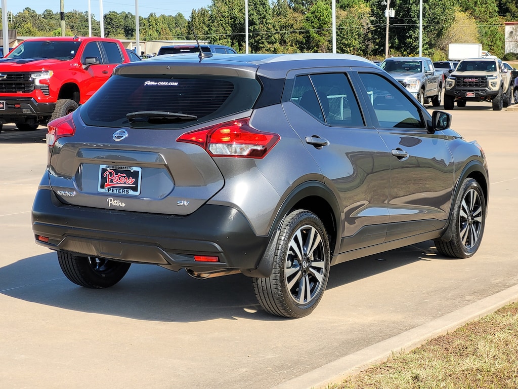 This 2018 Nissan Kicks SV in Gun Metallic comes with the following features: 1.6L 4-Cylinder DOHC 16V CVT with Xtronic FWD 17" Alloy Wheels, 3.927 Axle Ratio, 6 Speakers, ABS brakes, Air Conditioning, Alloy wheels, AM/FM radio: SiriusXM, Apple CarPlay/Android Auto, Automatic temperature control, Blind Spot Warning, Brake assist, Bumpers: body-color, Carpeted Floor Mats w/Cargo Mat, Cloth Seat Trim, Compass, Driver door bin, Driver vanity mirror, Driver's Seat Mounted Armrest, Dual front impact airbags, Dual front side impact airbags, Electronic Stability Control, Front anti-roll bar, Front Bucket Seats, Front reading lights, Front wheel independent suspension, Fully automatic headlights, Heated door mirrors, Illuminated entry, Knee airbag, Low tire pressure warning, Occupant sensing airbag, Outside temperature display, Overhead airbag, Panic alarm, Passenger door bin, Passenger vanity mirror, Power door mirrors, Power steering, Power windows, Radio data system, Radio: AM/FM Audio System, Rear reading lights, Rear window defroster, Rear window wiper, Remote keyless entry, Roof rack: rails only, Speed control, Splash Guards (4 Piece), Split folding rear seat, Sport steering wheel, Steering wheel mounted audio controls, Tachometer, Telescoping steering wheel, Tilt steering wheel, Traction control, Trip computer, and Variably intermittent wipers.
