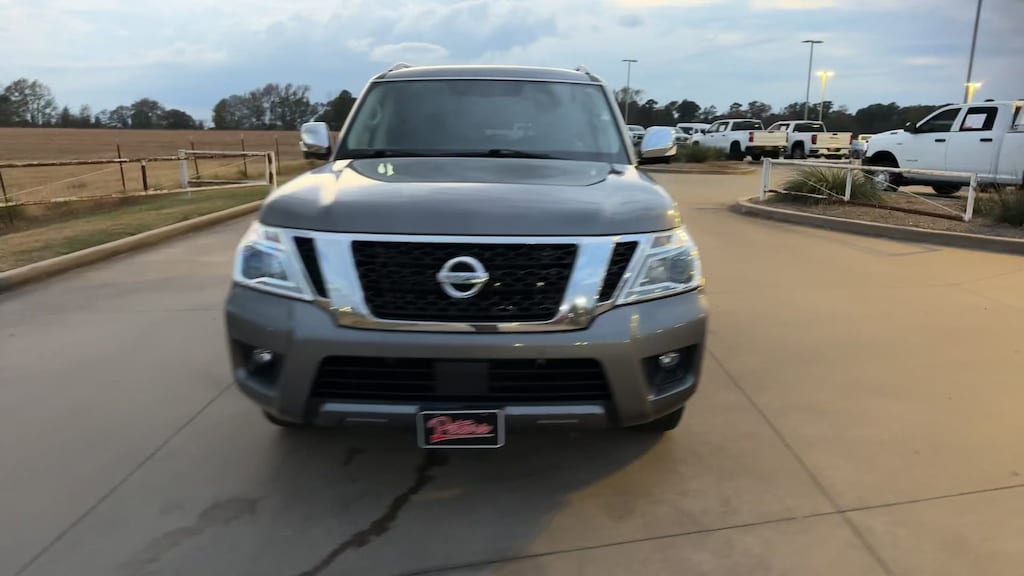 This 2020 Nissan Armada SL in Gun Metallic comes with the following features: 5.6L V8 7-Speed Automatic RWD Captain's Chairs Package (2nd Row Captain's Chairs and 2nd Row Center Console w/Padded Armrest), Premium Package (Blind Spot Warning, Intelligent Back-Up Intervention (I-BI), Intelligent Distance Control (I-DC), Power Sliding Moonroof w/Front Tilt & Rear Slide, and Rear Cross Traffic Alert (RCTA)), 13 Speakers, 20" Painted Alloy Wheels, 3rd Row Carpeted Floor Mats - Captain Seat, 3rd row seats: split-bench, 4-Wheel Disc Brakes, ABS brakes, Air Conditioning, Alloy wheels, AM/FM radio: SiriusXM, Anti-whiplash front head restraints, Auto tilt-away steering wheel, Auto-dimming door mirrors, Auto-dimming Rear-View mirror, Auto-leveling suspension, Automatic temperature control, Axle Ratio: 2.94, Brake assist, Bumpers: body-color, CD player, Delay-off headlights, Driver door bin, Driver vanity mirror, Dual front impact airbags, Dual front side impact airbags, DVD-Audio, Electronic Stability Control, Emergency communication system: NissanConnect Services, Exterior Parking Camera Rear, Four wheel independent suspension, Front anti-roll bar, Front Bucket Seats, Front Center Armrest, Front dual zone A/C, Front fog lights, Front reading lights, Fully automatic headlights, Garage door transmitter: HomeLink, Heated door mirrors, Heated Front Bucket Seats w/Power Driver's Memory, Heated front seats, Illuminated entry, Leather Shift Knob, Leather-Appointed Seat Trim, Low tire pressure warning, Memory seat, Navigation System, Occupant sensing airbag, Outside temperature display, Overhead airbag, Overhead console, Panic alarm, Passenger door bin, Passenger vanity mirror, Power door mirrors, Power driver seat, Power Liftgate, Power passenger seat, Power steering, Power windows, Radio data system, Radio: AM/FM/SXM/CD/MP3/HD, Rain sensing wipers, Rear air conditioning, Rear anti-roll bar, Rear reading lights, Rear seat center armrest, Rear window defroster, Rear window wiper, Reclining 3rd row seat, Remote keyless entry, Security system, Speed control, Speed-sensing steering, Speed-Sensitive Wipers, Split folding rear seat, Spoiler, Steering wheel memory, Steering wheel mounted audio controls, Tachometer, Telescoping steering wheel, Tilt steering wheel, Traction control, Trip computer, Turn signal indicator mirrors, Variably intermittent wipers, and Voltmeter.