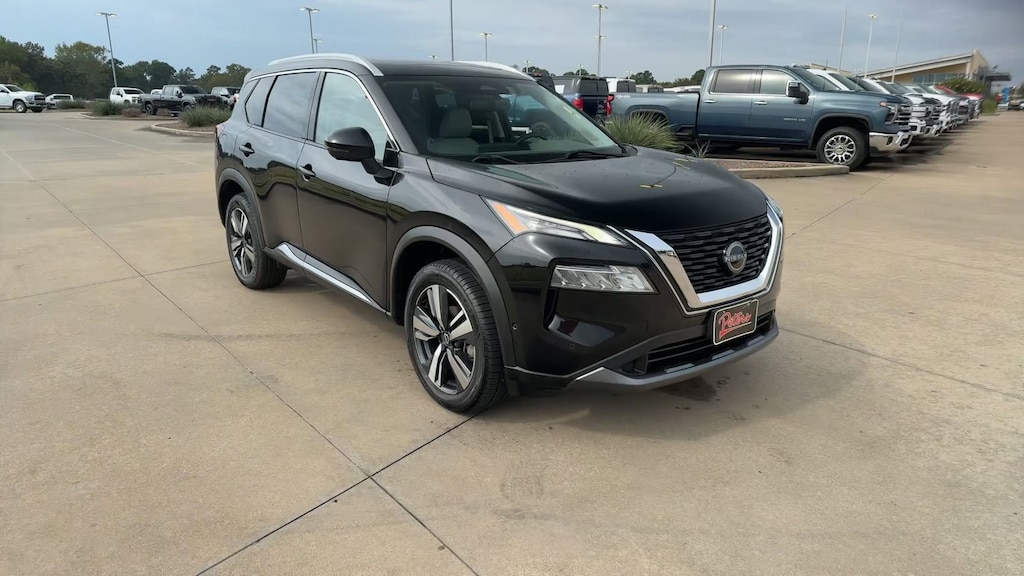 This 2023 Nissan Rogue SL in Super Black comes with the following features: 1.5L I3 Turbocharged DOHC 12V LEV3-ULEV50 201hp CVT with Xtronic FWD SL Premium Package (Bose Premium Audio System, Front, Side & Rear Sonar, Motion Activated Power Liftgate, ProPILOT Assist w/Navi-link, Radio: AM/FM NissanConnect w/Navigation, Rear Door Sunshades, Traffic Sign Recognition, and Tri-Zone HVAC), 19" Aluminum Alloy Wheels, 4-Wheel Disc Brakes, 5.604 Axle Ratio, 6 Speakers, ABS brakes, Air Conditioning, Alloy wheels, AM/FM Radio, AM/FM radio: SiriusXM, Auto High-beam Headlights, Auto-dimming Rear-View mirror, Automatic temperature control, Brake assist, Bumpers: body-color, Delay-off headlights, Driver door bin, Driver vanity mirror, Dual front impact airbags, Dual front side impact airbags, Electronic Stability Control, Emergency communication system: NissanConnect Services, First Aid Kit, Floor Mats w/2-Piece Cargo Area Protector, Four wheel independent suspension, Front anti-roll bar, Front Bucket Seats, Front Center Armrest, Front dual zone A/C, Front reading lights, Fully automatic headlights, Heated door mirrors, Heated Front Bucket Seats, Heated front seats, Heated steering wheel, Illuminated entry, Knee airbag, Leather steering wheel, Leather-Appointed Seat Trim, Low tire pressure warning, Memory seat, NissanConnect featuring Apple CarPlay and Android Auto, Occupant sensing airbag, Outside temperature display, Overhead airbag, Overhead console, Panic alarm, Passenger door bin, Passenger vanity mirror, Power door mirrors, Power driver seat, Power Liftgate, Power moonroof, Power passenger seat, Power steering, Power windows, Radio data system, Rear anti-roll bar, Rear Parking Sensors, Rear reading lights, Rear seat center armrest, Rear side impact airbag, Rear window defroster, Rear window wiper, Remote keyless entry, Security system, Speed control, Speed-Sensitive Wipers, Split folding rear seat, Spoiler, Steering wheel mounted audio controls, Tachometer, Telescoping steering wheel, Tilt steering wheel, Traction control, Trip computer, Turn signal indicator mirrors, and Variably intermittent wipers.