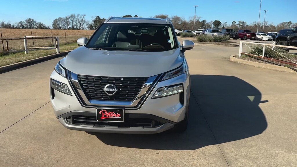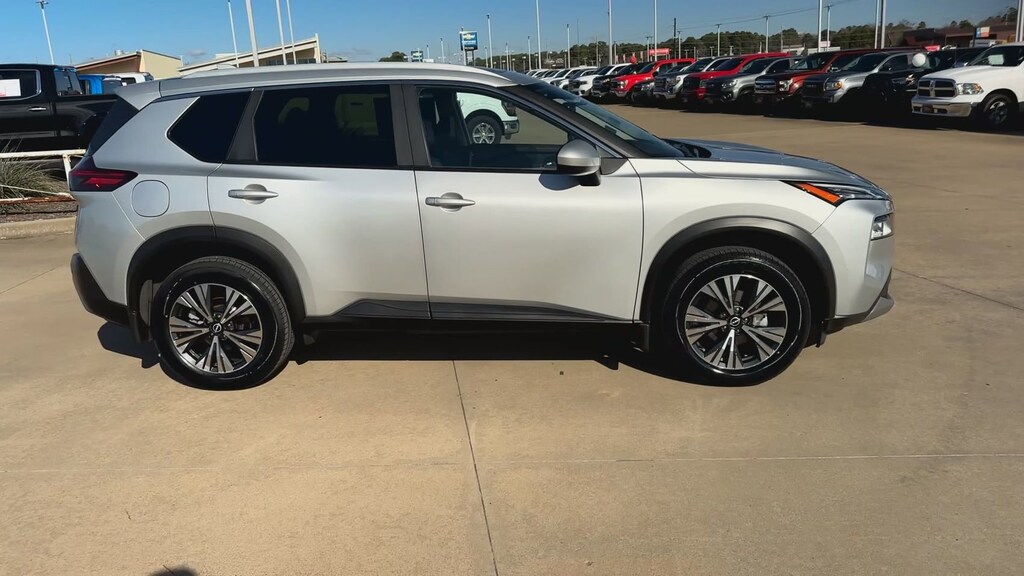This 2023 Nissan Rogue SV in Brilliant Silver Metallic comes with the following features: 1.5L I3 Turbocharged DOHC 12V LEV3-ULEV50 201hp CVT with Xtronic AWD SV Premium B Package (Heated Driver & Front Passenger Seats, Heated Leather Wrapped Steering Wheel, Leatherette Door Trim Inserts w/Stitch, Panoramic Moonroof, Power Liftgate, PRIMATEX Leatherette Seat Trim, Rear Door Sunshades, Rear Personal Lights, Security Alarm, and Silver Painted Roof Rails), 18" Aluminum Alloy Wheels, 4-Wheel Disc Brakes, 5.604 Axle Ratio, 6 Speakers, ABS brakes, Air Conditioning, Alloy wheels, AM/FM Radio, AM/FM radio: SiriusXM, Auto High-beam Headlights, Automatic temperature control, Black Splash Guards (Set of 4), Brake assist, Bumpers: body-color, Chrome Rear Bumper Protector, Cloth Seat Trim, Delay-off headlights, Driver door bin, Driver vanity mirror, Dual front impact airbags, Dual front side impact airbags, Electronic Stability Control, Emergency communication system: NissanConnect Services, First Aid Kit, Floor Mats w/1-Piece Cargo Area Protector, Four wheel independent suspension, Front anti-roll bar, Front Bucket Seats, Front Center Armrest, Front dual zone A/C, Front reading lights, Fully automatic headlights, Heated door mirrors, Illuminated entry, Knee airbag, Low tire pressure warning, NissanConnect featuring Apple CarPlay and Android Auto, Occupant sensing airbag, Outside temperature display, Overhead airbag, Overhead console, Panic alarm, Passenger door bin, Passenger vanity mirror, Power door mirrors, Power driver seat, Power steering, Power windows, Radio data system, Rear anti-roll bar, Rear Parking Sensors, Rear seat center armrest, Rear side impact airbag, Rear window defroster, Rear window wiper, Remote keyless entry, Speed control, Speed-Sensitive Wipers, Split folding rear seat, Spoiler, Steering wheel mounted audio controls, Tachometer, Telescoping steering wheel, Tilt steering wheel, Traction control, Trip computer, and Variably intermittent wipers.