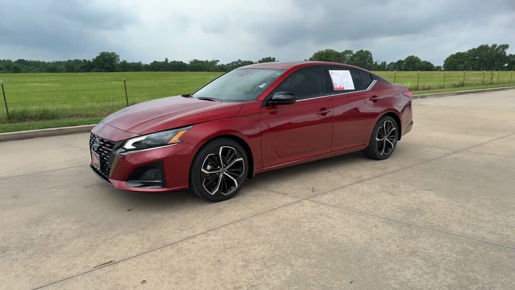 This 2024 Nissan Altima 2.5 SR in Scarlet Ember Tintcoat comes with the following features: 2.5L 4-Cylinder DOHC 16V CVT with Xtronic FWD SR Premium Package (2-Way Driver Power Lumbar Support, 4-Way Power Passenger Seat, Heated Front Seats, Leather-Appointed Seat Trim, NissanConnect, Premium Sport Interior Finishers, and Single Panel Moonroof), CVT with Xtronic, 4-Wheel Disc Brakes, 6 Speakers, ABS brakes, Air Conditioning, Alloy wheels, AM/FM radio: SiriusXM, Auto High-beam Headlights, Blind Spot Warning, Body-Colored Splash Guards, Brake assist, Bumpers: body-color, Delay-off headlights, Driver door bin, Driver vanity mirror, Dual front impact airbags, Dual front side impact airbags, Electronic Stability Control, Four wheel independent suspension, Front anti-roll bar, Front Bucket Seats, Front Center Armrest, Front reading lights, Fully automatic headlights, Illuminated entry, Knee airbag, Leather Shift Knob, Low tire pressure warning, NissanConnect featuring Apple CarPlay, Occupant sensing airbag, Outside temperature display, Overhead airbag, Overhead console, Panic alarm, Passenger door bin, Passenger vanity mirror, Power door mirrors, Power driver seat, Power steering, Power windows, Radio data system, Radio: AM/FM Audio System, Rear anti-roll bar, Rear Parking Sensors, Rear reading lights, Rear seat center armrest, Rear side impact airbag, Rear window defroster, Remote keyless entry, Security system, Speed control, Speed-sensing steering, Speed-Sensitive Wipers, Split folding rear seat, Sport Seat Trim, SR Floor Mats/Trunk Mat/Hideaway Nets, Steering wheel mounted audio controls, Tachometer, Telescoping steering wheel, Tilt steering wheel, Traction control, Trip computer, Trunk Organizer Tray, Unique Sport Seats, Variably intermittent wipers, and Wheels: 19" Sport Alloy.