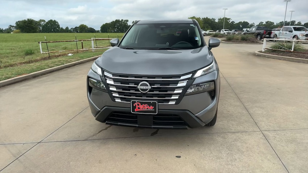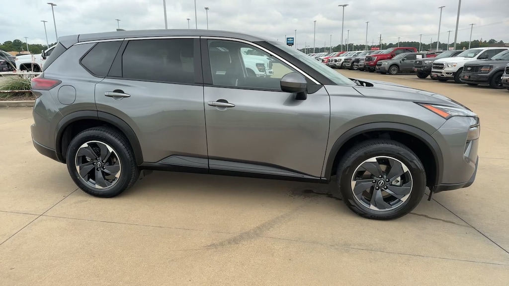 This 2024 Nissan Rogue SV in Gun Metallic comes with the following features: 1.5L DOHC CVT with Xtronic AWD AWD, 4-Wheel Disc Brakes, 5.676 Axle Ratio, 6 Speakers, ABS brakes, Air Conditioning, Alloy wheels, AM/FM radio: SiriusXM, Auto High-beam Headlights, Automatic temperature control, Brake assist, Bumpers: body-color, Cloth Seat Trim w/Patterned Inserts, Delay-off headlights, Driver door bin, Driver vanity mirror, Dual front impact airbags, Dual front side impact airbags, Electronic Stability Control, Emergency communication system: NissanConnect Services, Four wheel independent suspension, Front anti-roll bar, Front Bucket Seats, Front Center Armrest, Front dual zone A/C, Front reading lights, Fully automatic headlights, Heated door mirrors, Illuminated entry, Knee airbag, Low tire pressure warning, NissanConnect featuring Apple CarPlay and Android Auto, Occupant sensing airbag, Outside temperature display, Overhead airbag, Overhead console, Panic alarm, Passenger door bin, Passenger vanity mirror, Power door mirrors, Power driver seat, Power Liftgate, Power steering, Power windows, Radio data system, Radio: AM/FM NissanConnect, Rear anti-roll bar, Rear Parking Sensors, Rear seat center armrest, Rear side impact airbag, Rear window defroster, Rear window wiper, Remote keyless entry, Speed control, Speed-Sensitive Wipers, Split folding rear seat, Spoiler, Steering wheel mounted audio controls, Tachometer, Telescoping steering wheel, Tilt steering wheel, Traction control, Trip computer, Variably intermittent wipers, and Wheels: 18" Dark Painted Machine Finished Alloy.