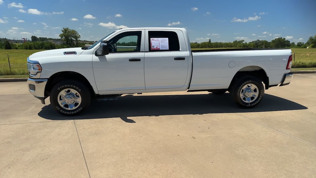 This 2023 Ram 2500 Tradesman in Bright White Clearcoat comes with the following features: 6.4L V8 8-Speed Automatic 4WD Chrome Appearance Group (Bright Front Bumper, Bright Rear Bumper, Center Hub, Chrome Grille Surround, Chrome Headlamp Bezels, Matte Black Mesh Grille w/Chrome, and Wheels: 18" x 8.0" Steel Chrome Clad), Protection Group (Tow Hooks), Quick Order Package 2GA Tradesman, Tradesman Level 1 Equipment Group (Manual Folding Exterior Mirrors and Manual Telescoping Mirrors), 17" x 7.5" Steel Styled Wheels, 2 Way Rear Headrest Seat, 3.73 Axle Ratio, 4 Way Front Headrests, 4-Wheel Disc Brakes, 40/20/40 Split Bench Seat, 6 Speakers, ABS brakes, Active Noise Control System, Air Conditioning, AM/FM radio, Anti-Spin Differential Rear Axle, Black Exterior Mirrors, Brake assist, Compass, Delay-off headlights, Driver door bin, Dual front impact airbags, Dual front side impact airbags, Electronic Stability Control, Electronically Controlled Throttle, Emergency communication system: SiriusXM Guardian, Front anti-roll bar, Front Center Armrest w/Storage, Front License Plate Bracket, Front reading lights, Fully automatic headlights, Global Telematics Box Module (TBM), GPS Antenna Input, Heavy Duty Vinyl 40/20/40 Split Bench Seat, Illuminated entry, Integrated Voice Command w/Bluetooth, Low tire pressure warning, Manual Adjust 4-Way Driver Seat, MOPAR Spray In Bedliner, Occupant sensing airbag, Outside temperature display, Overhead airbag, Overhead console, ParkView Rear Back-Up Camera, Passenger door bin, Passenger vanity mirror, Power steering, Power windows, Radio data system, Radio: Uconnect 3 w/5" Display, Rear anti-roll bar, Rear Folding Seat, Rear step bumper, SiriusXM Radio Service, Speed control, Storage Tray, Tachometer, Tilt steering wheel, Tip Start, Traction control, Trailer Brake Control, Trailer Light Check, Variably intermittent wipers, and Voltmeter.