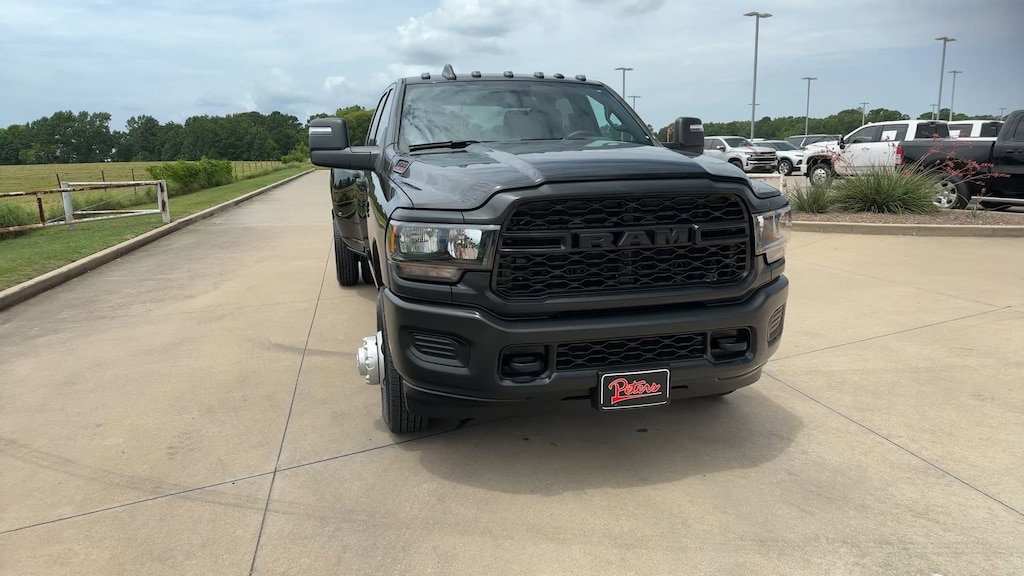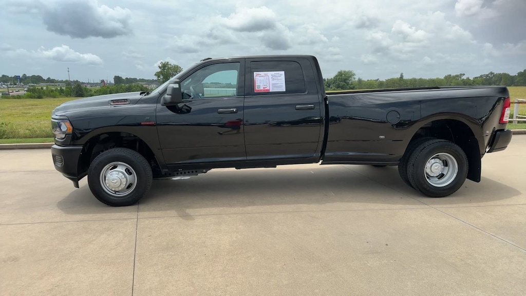 This 2024 Ram 3500 Tradesman in Diamond Black Crystal Pearlcoat comes with the following features: Cummins 6.7L I6 Turbodiesel 6-Speed Automatic 4WD Quick Order Package 2HA Tradesman, Tradesman Level 1 Equipment Group, 2 Way Rear Headrest Seat, 3.73 Axle Ratio, 4 Way Front Headrests, 4-Wheel Disc Brakes, 40/20/40 Split Bench Seat, 5th Wheel/Gooseneck Towing Prep Group, 6 Speakers, 6000# Front Axle w/Hub Ext, ABS brakes, Active Noise Control System, Air Conditioning, AM/FM radio, Black Exterior Mirrors, Box & Rear Fender Clearance Lamps, Brake assist, Center Hub, Clearance Lamps, Compass, Delay-off headlights, Driver door bin, Dual front impact airbags, Dual front side impact airbags, Dual Rear Wheels, Electronic Stability Control, Electronically Controlled Throttle, Emergency communication system: SiriusXM Guardian, For Details Visit DriveUconnect.com, Front anti-roll bar, Front Armrest w/Cupholders, Front Center Armrest w/Storage, Front reading lights, Fully automatic headlights, Global Telematics Box Module (TBM), GPS Antenna Input, HD Vinyl 40/20/40 Split Bench Seat, Illuminated entry, Integrated Voice Command w/Bluetooth, Low tire pressure warning, Manual Adjust 4-Way Driver Seat, Manual Adjust 4-Way Front Passenger Seat, Manual Folding Exterior Mirrors, Manual Telescoping Mirrors, Occupant sensing airbag, Outside temperature display, Overhead airbag, Overhead console, Panic alarm, ParkView Rear Back-Up Camera, Passenger door bin, Passenger vanity mirror, Power steering, Power windows, Radio data system, Radio: Uconnect 3 w/5" Display, Rear Folding Seat, Rear step bumper, Rear Wheelhouse Liners, Remote keyless entry, Remote USB Port - Charge Only, Speed control, Storage Tray, Tachometer, Tilt steering wheel, Tip Start, Traction control, Trailer Brake Control, Trailer Light Check, Variably intermittent wipers, Voltmeter, Wheels: 17" x 6.0" Steel Argent, and Wheels: 18" x 8.0" SteeL.