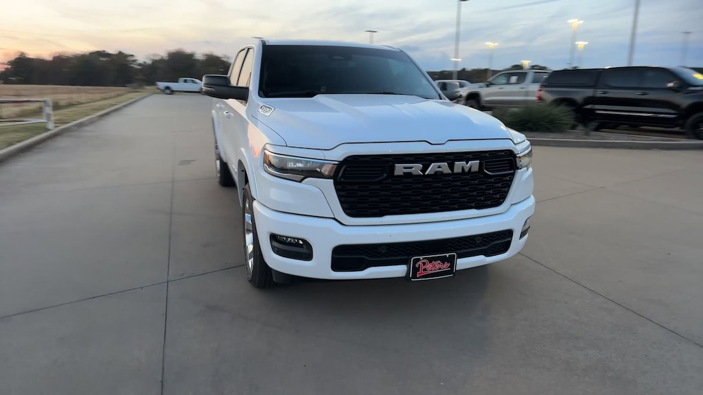 This 2025 Ram 1500 Big Horn/Lone Star in Bright White Clearcoat comes with the following features: 3.0L I6 8-Speed Automatic 4WD Big Horn Level 1 Equipment Group (115V Auxiliary Power Outlet, 2nd Row In Floor Storage Bins, 400W Inverter, Auto Power-Folding Mirrors, Auto-Dimming Exterior Driver Mirror, Auto-Dimming Rear-View Mirror, Black Exterior Mirrors, Black Premium Power Mirrors, Convex Wide-Angle Exterior Mirror Insert, Exterior Mirrors Courtesy Lamps, Exterior Mirrors w/Heating Element, Exterior Mirrors w/Supplemental Signals, Glove Box Lamp, Heated Front Seats, Heated Steering Wheel, Leather Wrapped Steering Wheel, Power 2-Way Driver Lumbar Adjust, Power Adjust 8-Way Driver Seat, Power Adjustable Pedals, Rear Power Sliding Window, Rear Window Defroster, Steering Wheel Mounted Audio Controls, Sun Visors w/Illuminated Vanity Mirrors, and Universal Garage Door Opener), Quick Order Package 21R Lone Star (Regional) (Lone Star Badge), Sport Appearance Package (3 Rear Seat Head Restraints, 4 Way Front Headrests, Black Interior Accents, Body Color Door Handles, Body Color Front Bumper, Body Color Rear Bumper w/Step Pads, Body Color Tailgate Handle, Bucket Seats, Deluxe Cloth Bucket Seats, Front Seat Back Map Pockets, Full Length Floor Console, Grille Surround 1 Body Color Texture 1 Black, Manual Adjust 4-Way Front Passenger Seat, RAM Grille Badge - Chrome, Rear 60/40 Folding Seat, and Rear Center Armrest), 3.21 Rear Axle Ratio, 3.55 Rear Axle Ratio, 33 Gallon Fuel Tank, 4-Wheel Disc Brakes, 4G LTE Wi-Fi Hot Spot, 6 Speakers, ABS brakes, Air Conditioning, Alloy wheels, AM/FM radio, Anti-Spin Differential Rear Axle, Apple CarPlay/Android Auto, Auto High-beam Headlights, Brake assist, Bumpers: chrome, Cloth Bench Seat, Compass, Connectivity - US/Canada, Delay-off headlights, Driver door bin, Dual front impact airbags, Dual front side impact airbags, Electronic Stability Control, Front anti-roll bar, Front Center Armrest w/Storage, Front fog lights, Front License Plate Bracket, Front reading lights, Front wheel independent suspension, Fully automatic headlights, GPS Antenna Input, Heated door mirrors, Illuminated entry, Integrated Voice Command w/Bluetooth, Low tire pressure warning, Manual Folding Exterior Mirrors, MOPAR Front & Rear Rubber Floor Mats, Occupant sensing airbag, Outside temperature display, Overhead airbag, Overhead console, Panic alarm, ParkView Rear Back-Up Camera, Passenger door bin, Passenger vanity mirror, Power door mirrors, Power steering, Power windows, Radio data system, Radio: Uconnect 5 W w/8.4" Display, Rear anti-roll bar, Rear seat center armrest, Rear step bumper, Remote keyless entry, Speed control, Split folding rear seat, Supplier Part Tracking (J-1), Tachometer, Telescoping steering wheel, Tilt steering wheel, Traction control, Trip computer, USB Host Flip, Variably intermittent wipers, Voltmeter, Wheels: 18" x 8" Cast-Aluminum Painted, and Wheels: 20" x 9" Aluminum Chrome Clad (WRK)
