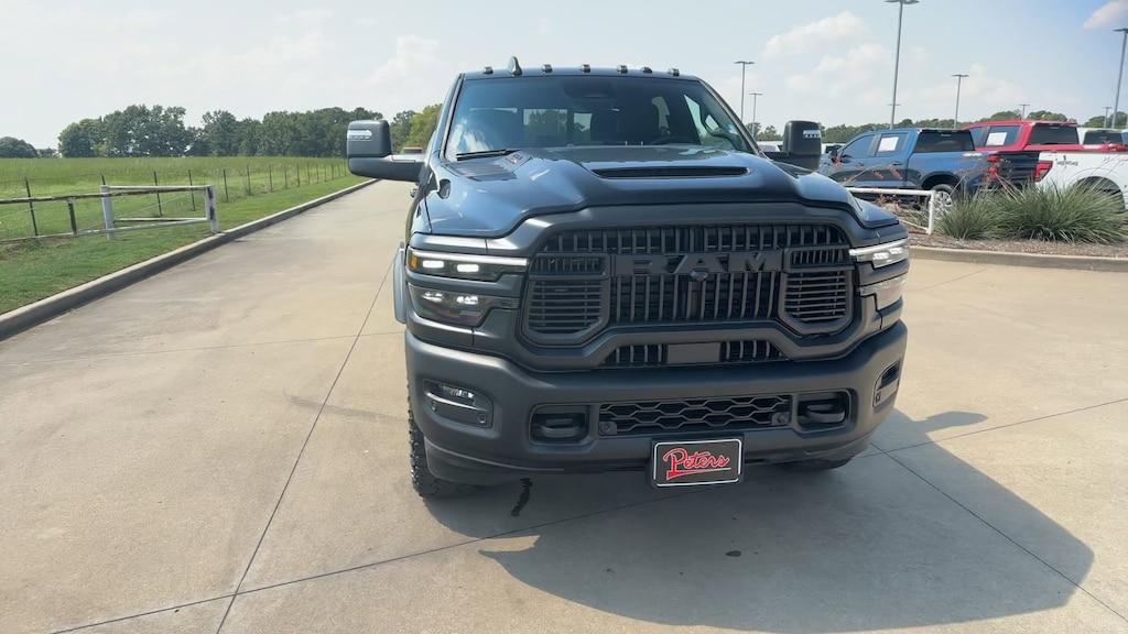 This 2025 Ram 2500 Rebel in Diamond Black Crystal Pearlcoat comes with the following features: 6.7L I6 8-Speed Automatic 4WD Bed Convenience Group (LED Bed Lighting and MOPAR Spray In Bedliner), Cold Weather Group (Engine Block Heater and MOPAR Winter Front Grille Cover), Quick Order Package 24R Rebel, Rebel Level 1 Equipment Group (115V Auxiliary Rear Power Outlet, 2 Way Rear Headrest Seat, 4 Way Front Headrests, 9 Alpine Speakers w/Subwoofer, Auto Adjust In Reverse Exterior Mirrors, Auto Dim Exterior Mirror, Auto High Beam Headlamp Control, Auto Power-Folding Mirrors, Auto-Dimming Exterior Passenger Mirror, Black Exterior Mirrors, Body Color Door Handles, Bucket Seats, Dual Wireless Charging Pad, Exterior Mirrors Courtesy Lamps, Exterior Mirrors w/Heating Element, Exterior Mirrors w/Memory, Exterior Mirrors w/Supplemental Signals, Folding Flat Load Floor Storage, Forward & Reverse Utility Lights, Front Door Locks 2-Door Passive Entry, Front Seat Back Map Pockets, Full Length Upgraded Floor Console, Heated Front Seats, Heated Second Row Seats, Heated Steering Wheel, High Back Seats, Leather Trimmed Bucket Seats (PL), LED Dome Lamp w/On/Off Switch, LED Interior Lighting, Media Hub w/2 Charge Only USBs, Mirror Running Lights, MOPAR Front & Rear Rubber Floor Mats, Overhead LED Lamps, Power 2-Way Driver Lumbar Adjust, Power 2-Way Passenger Lumbar Adjust, Power Adjust 8-Way Driver Seat, Power Adjust 8-Way Front Passenger Seat, Power Adjust Mirrors, Power Adjustable Convex Aux Mirrors, Power Adjustable Pedals w/Memory, Power Heated Fold Telescopic Mirrors w/Memory, Power Telescoping Mirrors, Premium Overhead Console, Radio/Driver Seat/Mirrors/Pedals Memory, Rain Sensitive Windshield Wipers, Rear 60/40 Folding Seat, Sport Performance Hood, Sun Visors w/Illuminated Vanity Mirrors, Universal Garage Door Opener, and Ventilated Front Seats), 4-Wheel Disc Brakes, 4G LTE Wi-Fi Hot Spot, 5th Wheel/Gooseneck Towing Prep Group, 6 Speakers, ABS brakes, Adjustable pedals, Air Conditioning, Alexa Built-In, Alloy wheels, AM/FM radio: SiriusXM with 360L, Apple CarPlay, Apple CarPlay/Android Auto, Auto-dimming Rear-View mirror, Automatic temperature control, Black Wheel Center Hub, Block heater, Brake assist, Cloth Heated Power Bench Seat, Compass, Connected Travel & Traffic Services, Connectivity - US/Canada, CTR Stop Lamp w/Cargo View Camera, Delay-off headlights, Disassociated Touchscreen Display, Driver door bin, Dual front impact airbags, Dual front side impact airbags, Electronic Stability Control, Emergency Vehicle Alert System (EVAS), Front anti-roll bar, Front Center Armrest w/Storage, Front dual zone A/C, Front fog lights, Front License Plate Bracket, Front reading lights, Fully automatic headlights, Global Telematics Box Module (TBM), Google Android Auto, GPS Antenna Input, GPS Navigation, HD Radio, Heated door mirrors, Heated front seats, Heated steering wheel, Illuminated entry, Integrated Voice Command w/Bluetooth, Leather steering wheel, Low tire pressure warning, Navigation System, Occupant sensing airbag, Off-Road Info Pages, Outside temperature display, Overhead airbag, Overhead console, Panic alarm, ParkView Rear Back-Up Camera, Passenger door bin, Passenger vanity mirror, Power door mirrors, Power driver seat, Power steering, Power windows, Radio data system, Radio: Uconnect 5 Nav w/12.0" Display, Rear anti-roll bar, Rear seat center armrest, Rear step bumper, Rear window defroster, Remote keyless entry, Security system, Selectable Tire Fill Alert, SiriusXM Radio Service, SiriusXM w/360L, Speed control, Split folding rear seat, Steering wheel mounted audio controls, Tachometer, Tilt steering wheel, Traction control, Trailer Tow Pages, Trip computer, Turn signal indicator mirrors, Variably intermittent wipers, Vendor Painted Cargo Box, Vendor Painted Cargo Box Tracking, Voltmeter, and Wheels: 20" x 8.0" Black Diamond Cut Aluminum.