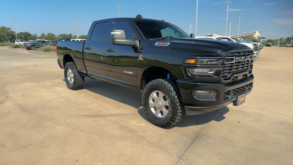 This 2025 Ram 2500 Big Horn in Diamond Black Crystal Pearlcoat comes with the following features: 6.7L I6 8-Speed Automatic 4WD Big Horn Level 1 Plus Equipment Group (12" Touchscreen Display, 2 Way Rear Headrest Seat, 2nd Row In Floor Storage Bins, 4 Way Front Headrests, 40/20/40 Split Bench Seat, 4G LTE Wi-Fi Hot Spot, 9 Alpine Speakers w/Subwoofer, Air Conditioning ATC w/Dual Zone Control, Alexa Built-In, Anti-Spin Differential Rear Axle, Apple CarPlay, Auto Power-Folding Mirrors, Auto-Dimming Rear-View Mirror, Black Exterior Mirrors, Connected Travel & Traffic Services, Connectivity - US/Canada, Dual Glove Boxes, Emergency Vehicle Alert System (EVAS), Exterior Mirrors Courtesy Lamps, Exterior Mirrors w/Heating Element, Exterior Mirrors w/Supplemental Signals, Foam Bottle Insert (Door Trim Panel), Folding Flat Load Floor Storage, Footwell Courtesy Lamp, Forward & Reverse Utility Lights, Front Armrest w/Cupholders, Front Center Seat Cushion Storage, Front Seat Back Map Pockets, Global Telematics Box Module (TBM), Glove Box Lamp, Google Android Auto, GPS Antenna Input, GPS Navigation, HD Radio, Integrated Voice Command w/Bluetooth, LED Bed Lighting, Locking Lower Glove Box, Luxury Steering Wheel, Manual Adjust 4-Way Front Passenger Seat, Mirror Running Lights, MOPAR Deployable Bed Step, MOPAR Spray In Bedliner, Off-Road Info Pages, Power 2-Way Driver Lumbar Adjust, Power Adjust 8-Way Driver Seat, Power Adjust Mirrors, Power Adjustable Convex Aux Mirrors, Power Heated Folding Telescopic Mirrors, Power Telescoping Mirrors, Premium Cloth 40/20/40 Bench Seat, Radio: Uconnect 5 Nav w/12.0" Display, Rear 60/40 Folding Seat, Rear Dome w/On/Off Switch Lamp, Remote Start System, Remote USB Port - Charge Only, Selectable Tire Fill Alert, SiriusXM Ra