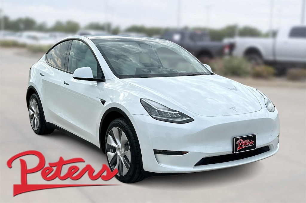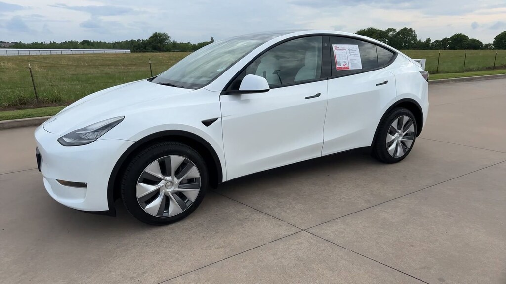 This 2023 Tesla Model Y Long Range in White comes with the following features: Electric Motor 1-Speed Automatic AWD 14 Speakers, 4-Wheel Disc Brakes, 5 Seat Interior, 9.0 Axle Ratio, ABS brakes, Air Conditioning, Alloy wheels, Audio memory, Auto High-beam Headlights, Auto tilt-away steering wheel, Auto-dimming door mirrors, Auto-dimming Rear-View mirror, Automatic temperature control, Brake assist, Bumpers: body-color, Compass, Delay-off headlights, Driver door bin, Driver vanity mirror, Dual front impact airbags, Dual front side impact airbags, Electronic Stability Control, Emergency communication system, Exterior Parking Camera Rear, Four wheel independent suspension, Front anti-roll bar, Front Bucket Seats, Front Center Armrest, Front dual zone A/C, Front fog lights, Front reading lights, Fully automatic headlights, Genuine wood dashboard insert, Heated door mirrors, Heated front seats, Heated rear seats, Heated steering wheel, HVAC memory, Illuminated entry, Knee airbag, Lane Departure Warning System, Low tire pressure warning, Memory seat, Navigation System, Occupant sensing airbag, Outside temperature display, Overhead airbag, Passenger door bin, Passenger vanity mirror, Power door mirrors, Power driver seat, Power Liftgate, Power passenger seat, Power steering, Power windows, Premium Audio System, Radio data system, Rain sensing wipers, Rear reading lights, Rear seat center armrest, Rear window defroster, Security system, Speed control, Speed-sensing steering, Split folding rear seat, Steering wheel memory, Steering wheel mounted A/C controls, Steering wheel mounted audio controls, Telescoping steering wheel, Tilt steering wheel, Traction control, Trip computer, Variably intermittent wipers, Vegan Leather Seat Trim, and Wheels: 19" x 9.5" Gemini.