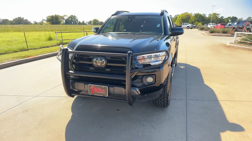 This 2019 Toyota Tacoma SR in Black comes with the following features: 2.7L I4 DOHC 16V 6-Speed Automatic RWD ABS brakes, Active Cruise Control, Electronic Stability Control, Illuminated entry, Low tire pressure warning, Traction control, 16" x 7J+30 Style Steel Disc Wheels, 4 Speakers, Air Conditioning, AM/FM radio, Anti-whiplash front head restraints, Auto High-beam Headlights, Axle Ratio: 4.30, Brake assist, Bumpers: body-color, CD player, Driver door bin, Dual front impact airbags, Dual front side impact airbags, Exterior Parking Camera Rear, Fabric Seat Trim (FB), Front anti-roll bar, Front Bucket Seats, Front Center Armrest, Front reading lights, Front wheel independent suspension, Knee airbag, Occupant sensing airbag, Outside temperature display, Overhead airbag, Overhead console, Passenger door bin, Power door mirrors, Power steering, Power windows, Radio: Entune AM/FM/CD, Rear step bumper, Speed control, Speed-sensing steering, Split folding rear seat, Steering wheel mounted audio controls, Tachometer, Telescoping steering wheel, and Tilt steering wheel.
