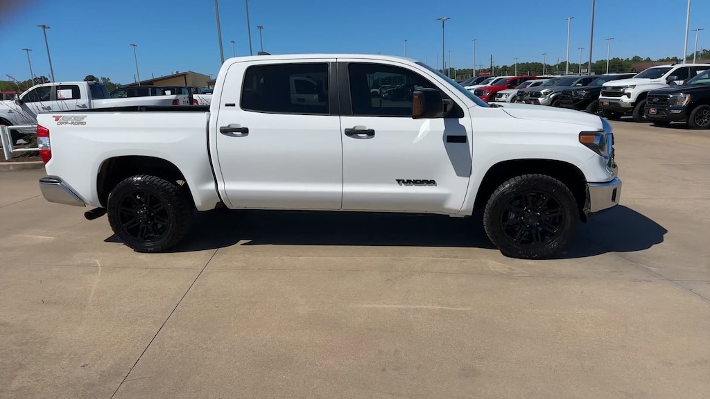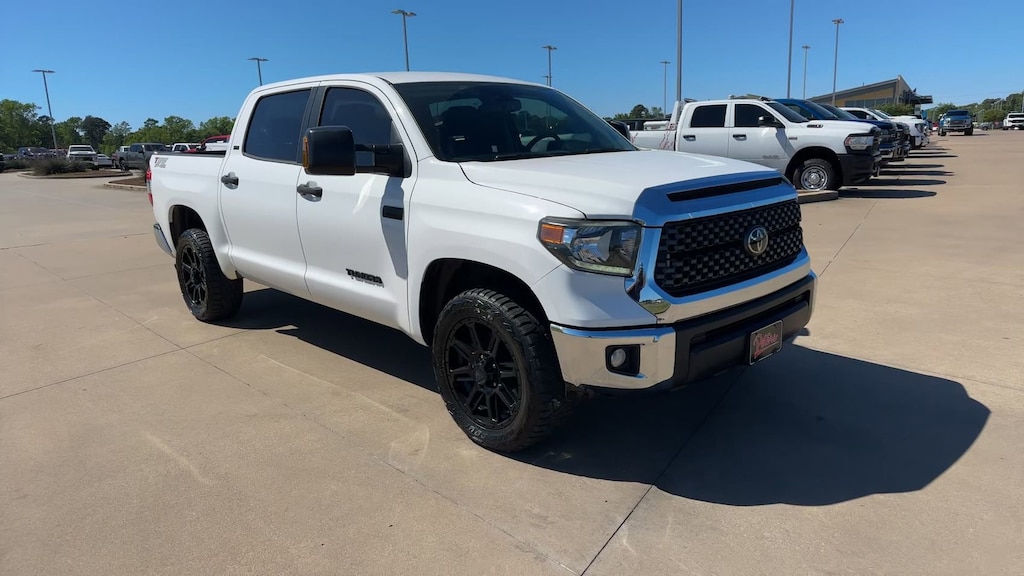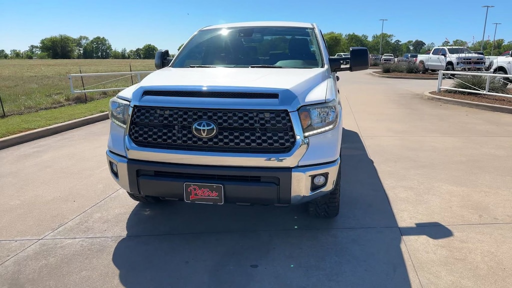 This 2020 Toyota Tundra SR5 5.7L V8 in Super White comes with the following features: i-Force 5.7L V8 DOHC 32V LEV 6-Speed Automatic Electronic 4WD ABS brakes, Active Cruise Control, Compass, Electronic Stability Control, Heated door mirrors, Illuminated entry, Low tire pressure warning, Remote keyless entry, Traction control, 18" Styled Steel Wheels, 3-Passenger Front Bench Seat, 4-Wheel Disc Brakes, 4.30 Axle Ratio, 9 Speakers, Air Conditioning, AM/FM radio: SiriusXM, Apple CarPlay/Android Auto, Auto High-beam Headlights, Auto-dimming Rear-View mirror, Brake assist, Delay-off headlights, Driver door bin, Driver vanity mirror, Dual front impact airbags, Dual front side impact airbags, Emergency communication system: Safety Connect with 1-year trial, Exterior Parking Camera Rear, Fabric Seat Trim, Front anti-roll bar, Front Center Armrest w/Storage, Front fog lights, Front reading lights, Front wheel independent suspension, Fully automatic headlights, Garage door transmitter: HomeLink, Knee airbag, Occupant sensing airbag, Outside temperature display, Overhead airbag, Overhead console, Panic alarm, Passenger door bin, Passenger vanity mirror, Power door mirrors, Power steering, Power windows, Radio data system, Radio: Audio Plus AM/FM/HD Radio, Rear reading lights, Rear seat center armrest, Rear step bumper, Rear window defroster, Safety Connect, SiriusXM Radio, Speed control, Speed-sensing steering, Split folding rear seat, Steering wheel mounted audio controls, Tachometer, Tilt steering wheel, Trip computer, Variably intermittent wipers, and Voltmeter.