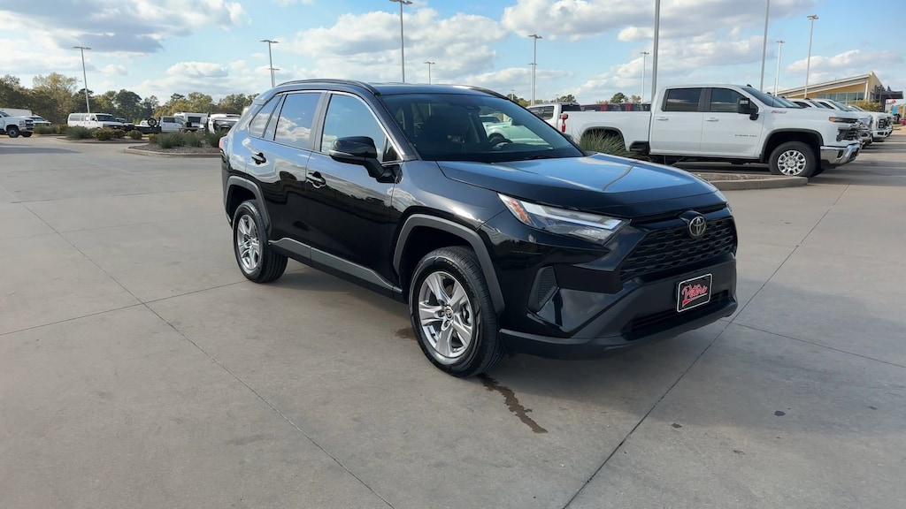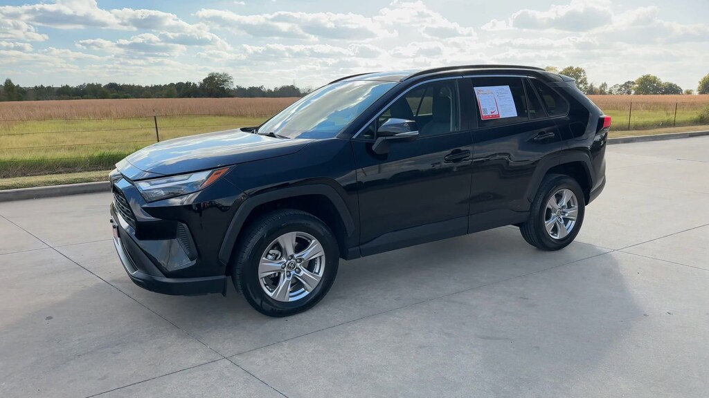 This 2022 Toyota RAV4 XLE in Black comes with the following features: 2.5L 4-Cylinder DOHC Dual VVT-i 8-Speed Automatic FWD Ash w/Fabric Seat Trim, 4-Wheel Disc Brakes, 6 Speakers, ABS brakes, Air Conditioning, Alloy wheels, AM/FM radio: SiriusXM, AM/FM Stereo, Apple CarPlay/Android Auto, Auto High-beam Headlights, Automatic temperature control, Axle Ratio: 3.177, Brake assist, Bumpers: body-color, Delay-off headlights, Driver door bin, Driver vanity mirror, Dual front impact airbags, Dual front side impact airbags, Electronic Stability Control, Emergency communication system: Safety Connect with 1-year trial, Exterior Parking Camera Rear, Fabric Seat Trim, Four wheel independent suspension, Front anti-roll bar, Front Bucket Seats, Front Center Armrest, Front dual zone A/C, Front reading lights, Fully automatic headlights, Heated door mirrors, Illuminated entry, Knee airbag, Low tire pressure warning, Occupant sensing airbag, Outside temperature display, Overhead airbag, Overhead console, Panic alarm, Passenger door bin, Passenger vanity mirror, Power door mirrors, Power driver seat, Power steering, Power windows, Radio data system, Rear anti-roll bar, Rear seat center armrest, Rear window defroster, Rear window wiper, Remote keyless entry, Roof rack: rails only, Speed control, Speed-sensing steering, Split folding rear seat, Spoiler, Steering wheel mounted audio controls, Tachometer, Telescoping steering wheel, Tilt steering wheel, Traction control, Trip computer, Turn signal indicator mirrors, Variably intermittent wipers, and Wheels: 17" 5-Spoke Silver Alloy.