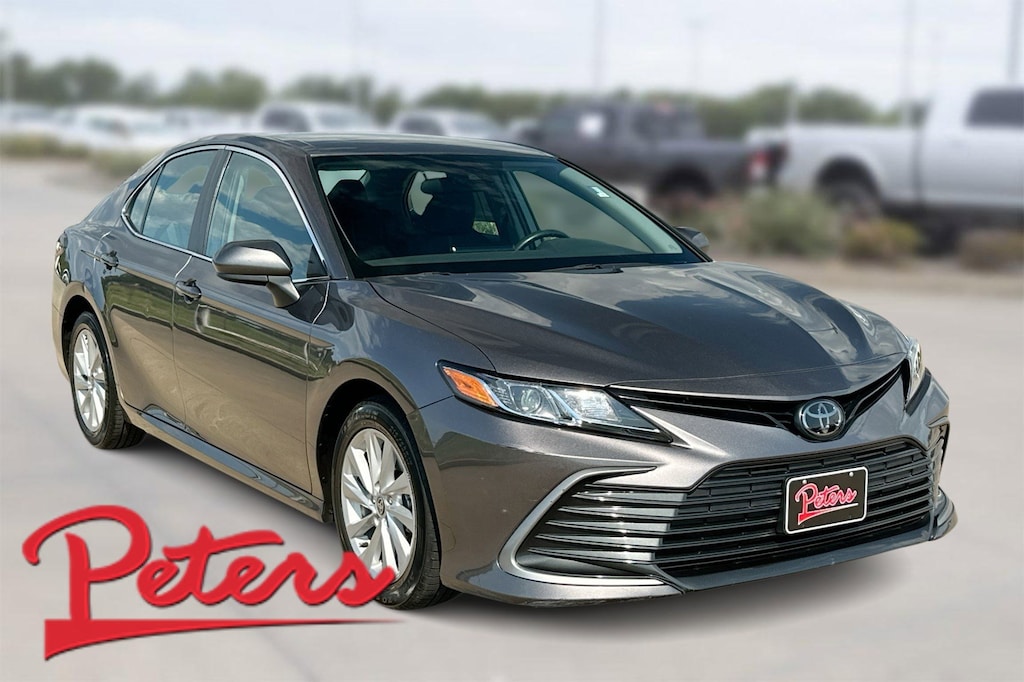 This 2024 Toyota Camry LE in Gray comes with the following features: 2.5L I4 DOHC 16V 8-Speed Automatic FWD Ash w/Fabric Seat Trim, 4-Wheel Disc Brakes, 6 Speakers, ABS brakes, Air Conditioning, Alloy wheels, AM/FM radio: SiriusXM, Apple CarPlay/Android Auto, Auto High-beam Headlights, Automatic temperature control, Brake assist, Bumpers: body-color, Delay-off headlights, Driver door bin, Driver vanity mirror, Dual front impact airbags, Dual front side impact airbags, Electronic Stability Control, Emergency communication system: Safety Connect (1-year trial), Exterior Parking Camera Rear, Fabric Seat Trim, Four wheel independent suspension, Front anti-roll bar, Front Bucket Seats, Front Center Armrest, Front dual zone A/C, Front reading lights, Fully automatic headlights, Illuminated entry, Knee airbag, Low tire pressure warning, Occupant sensing airbag, Outside temperature display, Overhead airbag, Overhead console, Panic alarm, Passenger door bin, Passenger vanity mirror, Power door mirrors, Power driver seat, Power steering, Power windows, Radio data system, Radio: Audio, Rear anti-roll bar, Rear seat center armrest, Rear side impact airbag, Rear window defroster, Remote keyless entry, Security system, Speed control, Speed-sensing steering, Split folding rear seat, Steering wheel mounted audio controls, Tachometer, Telescoping steering wheel, Tilt steering wheel, Traction control, Trip computer, Variably intermittent wipers, and Wheels: 17" x 7.5J Alloy.