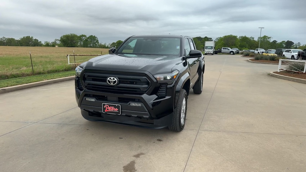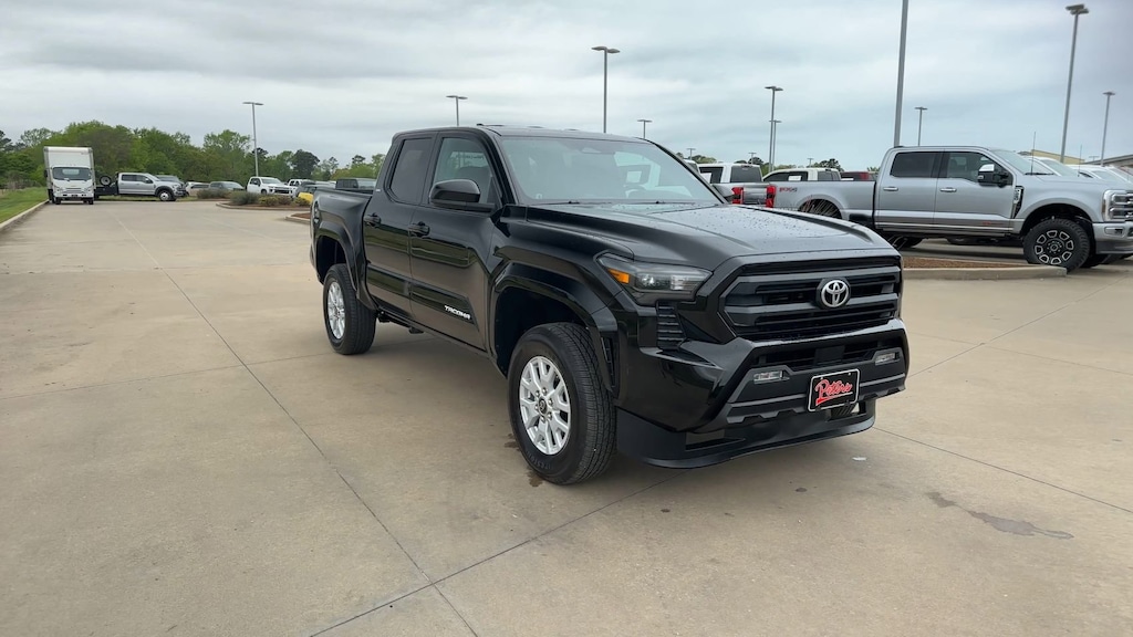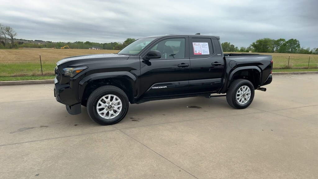 This 2024 Toyota Tacoma SR5 in Black comes with the following features: 2.4L 4-Cylinder 8-Speed Automatic RWD ABS brakes, Alloy wheels, Electronic Stability Control, Heated door mirrors, Illuminated entry, Low tire pressure warning, Remote keyless entry, Traction control, 3.583 Axle Ratio, 4-Wheel Disc Brakes, 6 Speakers, Air Conditioning, AM/FM radio: SiriusXM, Anti-whiplash front head restraints, Apple CarPlay/Android Auto, Auto High-beam Headlights, Auto-dimming Rear-View mirror, Brake assist, Bumpers: body-color, Driver door bin, Dual front impact airbags, Dual front side impact airbags, Emergency communication system: Safety Connect (1-year trial), Exterior Parking Camera Rear, Four wheel independent suspension, Front anti-roll bar, Front Bucket Seats, Front Center Armrest, Front fog lights, Front reading lights, Fully automatic headlights, Knee airbag, Occupant sensing airbag, Outside temperature display, Overhead airbag, Overhead console, Panic alarm, Passenger door bin, Power door mirrors, Power steering, Power windows, Radio: 8" Toyota Audio Multimedia, Rear step bumper, Rear window defroster, Speed control, Speed-sensing steering, Split folding rear seat, Steering wheel mounted audio controls, Tachometer, Telescoping steering wheel, Tilt steering wheel, Trip computer, Variably intermittent wipers, and Wheels: 17" Styled Alloy.