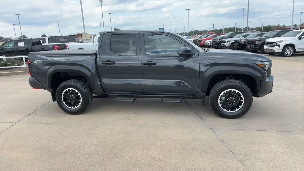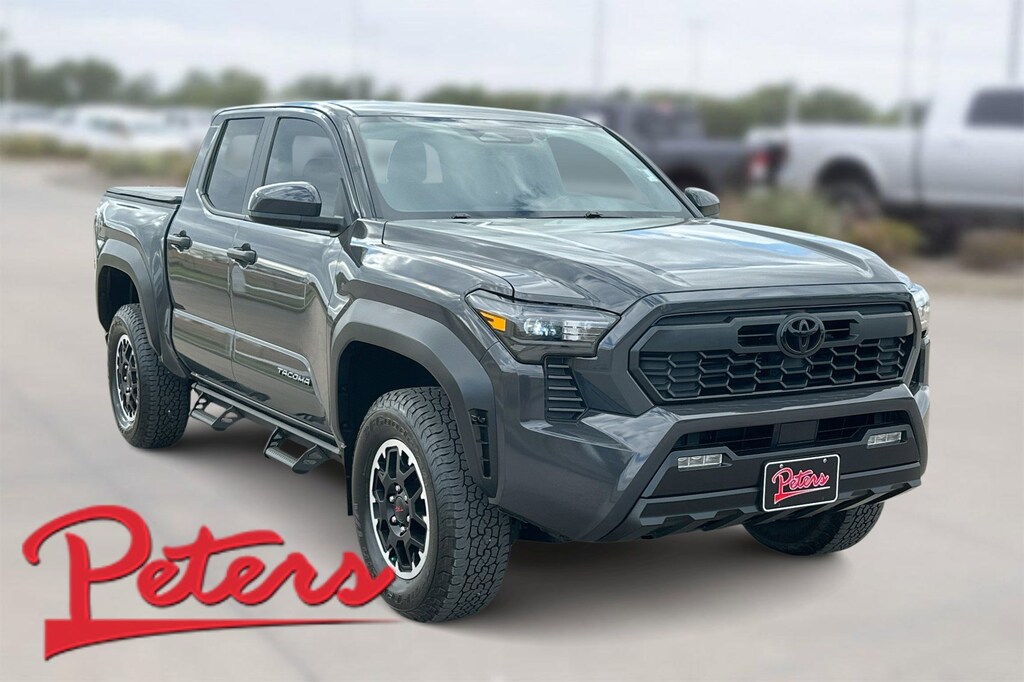 This 2024 Toyota Tacoma TRD Off-Road in Blue comes with the following features: 2.4L 4-Cylinder 8-Speed Automatic 4WD ABS brakes, Alloy wheels, Electronic Stability Control, Heated door mirrors, Illuminated entry, Low tire pressure warning, Remote keyless entry, Traction control, 3.583 Axle Ratio, 4-Wheel Disc Brakes, 6 Speakers, Air Conditioning, AM/FM radio: SiriusXM, Anti-whiplash front head restraints, Apple CarPlay/Android Auto, Auto High-beam Headlights, Auto-dimming Rear-View mirror, Automatic temperature control, Brake assist, Bumpers: body-color, Driver door bin, Driver vanity mirror, Dual front impact airbags, Dual front side impact airbags, Emergency communication system: Safety Connect (1-year trial), Exterior Parking Camera Rear, Fabric Seat Trim (FD), Four wheel independent suspension, Front anti-roll bar, Front Bucket Seats, Front Center Armrest, Front fog lights, Front reading lights, Fully automatic headlights, Knee airbag, Leather Shift Knob, Leather steering wheel, Occupant sensing airbag, Outside temperature display, Overhead airbag, Overhead console, Panic alarm, Passenger door bin, Passenger vanity mirror, Power door mirrors, Power steering, Power windows, Radio: 8" Toyota Audio Multimedia, Rear step bumper, Rear window defroster, Security system, Speed control, Speed-sensing steering, Split folding rear seat, Steering wheel mounted audio controls, Tachometer, Telescoping steering wheel, Tilt steering wheel, Trip computer, Turn signal indicator mirrors, Variably intermittent wipers, and Wheels: 17" TRD Off-Road Alloy.