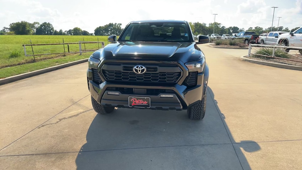 This 2024 Toyota Tacoma TRD Off-Road in Black comes with the following features: 2.4L 4-Cylinder 8-Speed Automatic 4WD 4WD, ABS brakes, Alloy wheels, Electronic Stability Control, Heated door mirrors, Illuminated entry, Low tire pressure warning, Remote keyless entry, Traction control, 3.583 Axle Ratio, 4-Wheel Disc Brakes, 6 Speakers, Air Conditioning, AM/FM radio: SiriusXM, Anti-whiplash front head restraints, Apple CarPlay/Android Auto, Auto High-beam Headlights, Auto-dimming Rear-View mirror, Automatic temperature control, Brake assist, Bumpers: body-color, Driver door bin, Driver vanity mirror, Dual front impact airbags, Dual front side impact airbags, Emergency communication system: Safety Connect (1-year trial), Exterior Parking Camera Rear, Fabric Seat Trim (FD), Four wheel independent suspension, Front anti-roll bar, Front Bucket Seats, Front Center Armrest, Front fog lights, Front reading lights, Fully automatic headlights, Knee airbag, Leather Shift Knob, Leather steering wheel, Occupant sensing airbag, Outside temperature display, Overhead airbag, Overhead console, Panic alarm, Passenger door bin, Passenger vanity mirror, Power door mirrors, Power steering, Power windows, Radio: 8" Toyota Audio Multimedia, Rear step bumper, Rear window defroster, Security system, Speed control, Speed-sensing steering, Split folding rear seat, Steering wheel mounted audio controls, Tachometer, Telescoping steering wheel, Tilt steering wheel, Trip computer, Turn signal indicator mirrors, Variably intermittent wipers, and Wheels: 17" TRD Off-Road Alloy.