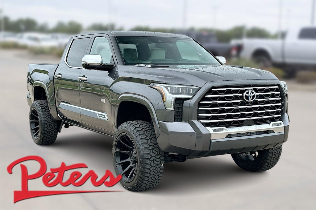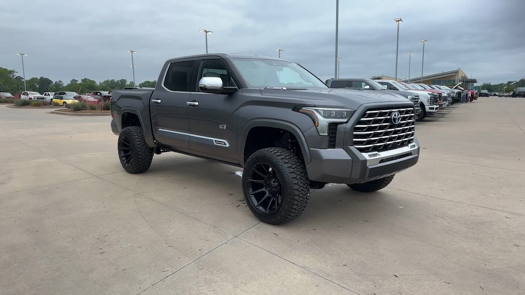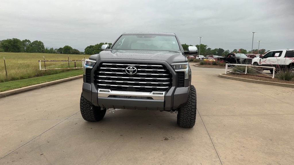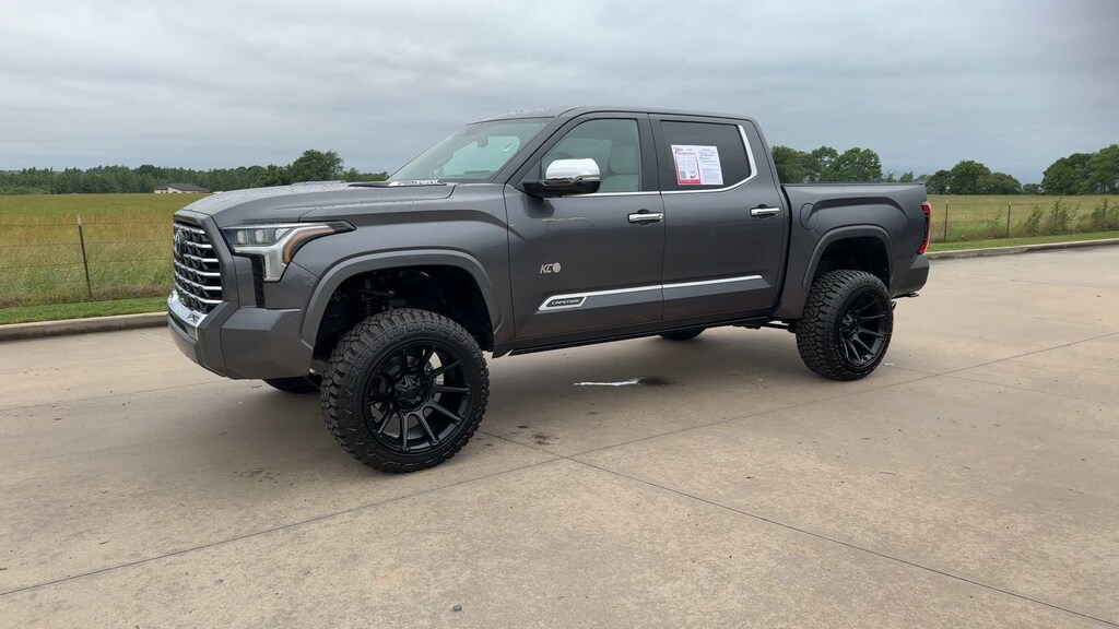This 2024 Toyota Tundra Hybrid Capstone in Gray comes with the following features: 3.4L V6 10-Speed Automatic 4WD 3.4L V6, 12 Speakers, 3.31 Axle Ratio, 4-Wheel Disc Brakes, ABS brakes, Air Conditioning, Alloy wheels, AM/FM radio: SiriusXM, Apple CarPlay/Android Auto, Auto High-beam Headlights, Auto-dimming door mirrors, Auto-dimming Rear-View mirror, Automatic temperature control, Brake assist, Bumpers: body-color, Compass, Delay-off headlights, Driver door bin, Driver vanity mirror, Dual front impact airbags, Dual front side impact airbags, Electronic Stability Control, Emergency communication system: Safety Connect (10-year trial), Exterior Parking Camera Rear, Front anti-roll bar, Front Bucket Seats, Front Center Armrest, Front dual zone A/C, Front fog lights, Front reading lights, Front wheel independent suspension, Fully automatic headlights, Garage door transmitter: HomeLink, Heads-Up Display, Heated & Ventilated Front Bucket Seats, Heated door mirrors, Heated front seats, Heated rear seats, Heated steering wheel, Illuminated entry, Knee airbag, Leather Shift Knob, Low tire pressure warning, Memory seat, Navigation System, Occupant sensing airbag, Outside temperature display, Overhead airbag, Overhead console, Panic alarm, Passenger door bin, Passenger vanity mirror, Power door mirrors, Power driver seat, Power moonroof, Power passenger seat, Power steering, Power windows, Radio data system, Radio: Premium Audio w/JBL, Rain sensing wipers, Rear reading lights, Rear seat center armrest, Rear step bumper, Rear window defroster, Remote keyless entry, Security system, Semi-Aniline Leather Seat Trim, Speed control, Speed-sensing steering, Split folding rear seat, Steering wheel memory, Steering wheel mounted audio controls, Tachometer, Telescoping steering wheel, Tilt steering wheel, Traction control, Trip computer, Turn signal indicator mirrors, Variably intermittent wipers, Ventilated front seats, Ventilated rear seats, Voltmeter, and Wheels: 22" Dark Chrome Alloy.