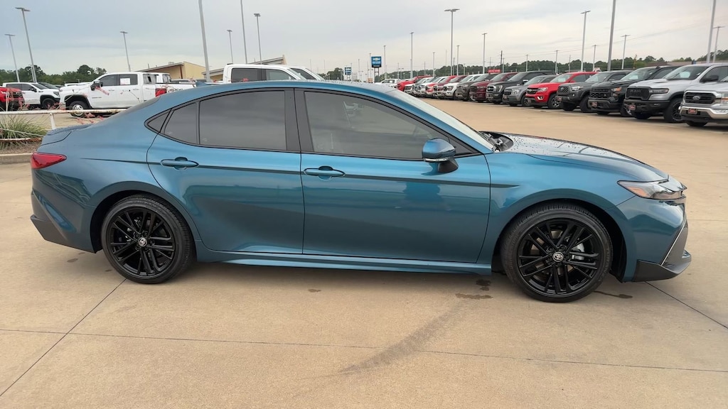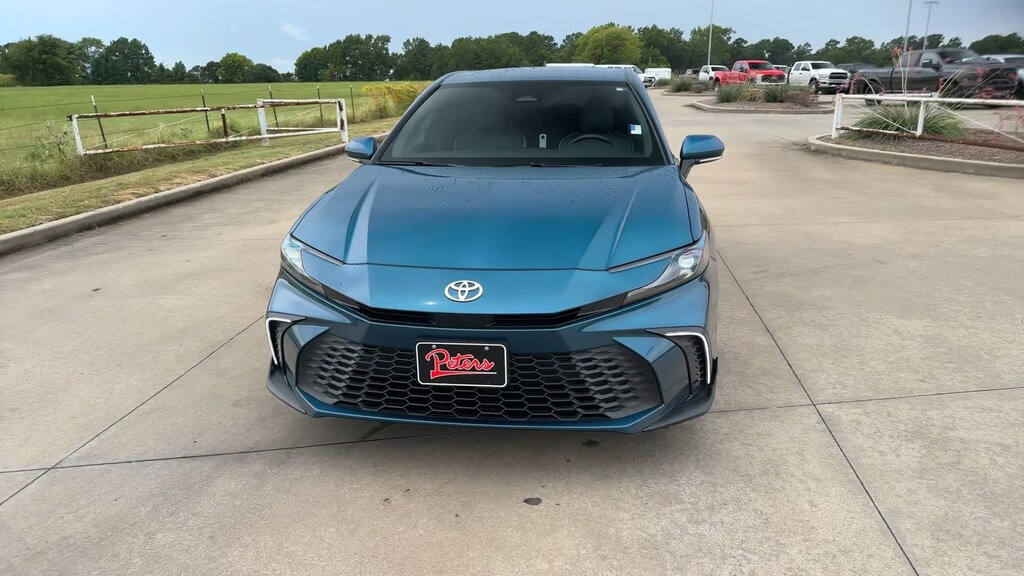 This 2025 Toyota Camry SE in Blue comes with the following features: 2.5L 4-Cylinder 16V DOHC eCVT FWD 2.5L 4-Cylinder 16V DOHC, Boulder w/Leather/Dinamica Microfiber Seat Trim, ABS brakes, Active Cruise Control, Alloy wheels, Electronic Stability Control, Front dual zone A/C, Heated door mirrors, Illuminated entry, Low tire pressure warning, Remote keyless entry, Traction control, 4-Wheel Disc Brakes, 6 Speakers, Air Conditioning, AM/FM radio: SiriusXM, Apple CarPlay/Android Auto, Auto High-beam Headlights, Automatic temperature control, Brake assist, Bumpers: body-color, Delay-off headlights, Driver door bin, Driver vanity mirror, Dual front impact airbags, Dual front side impact airbags, Emergency communication system: Safety Connect (up to 10-year trial subscription), Exterior Parking Camera Rear, Four wheel independent suspension, Front anti-roll bar, Front Bucket Seats, Front Center Armrest, Front reading lights, Fully automatic headlights, Knee airbag, Leather Shift Knob, Leather steering wheel, Occupant sensing airbag, Outside temperature display, Overhead airbag, Overhead console, Panic alarm, Passenger door bin, Passenger vanity mirror, Power door mirrors, Power driver seat, Power steering, Power windows, Radio data system, Radio: Toyota Audio Multimedia w/8" Touchscreen, Rear anti-roll bar, Rear reading lights, Rear seat center armrest, Rear side impact airbag, Rear window defroster, Security system, SofTex & Fabric Seat Trim, Speed control, Speed-sensing steering, Split folding rear seat, Spoiler, Steering wheel mounted audio controls, Telescoping steering wheel, Tilt steering wheel, Trip computer, Turn signal indicator mirrors, Variably intermittent wipers, and Wheels: 18" Black-Finished Alloy.
