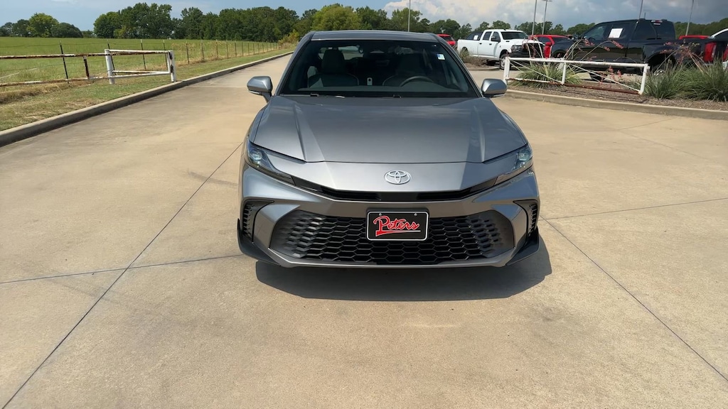 This 2025 Toyota Camry SE in Gray comes with the following features: 2.5L 4-Cylinder 16V DOHC eCVT FWD 2.5L 4-Cylinder 16V DOHC, Boulder w/Leather/Dinamica Microfiber Seat Trim, ABS brakes, Active Cruise Control, Alloy wheels, Electronic Stability Control, Front dual zone A/C, Heated door mirrors, Illuminated entry, Low tire pressure warning, Remote keyless entry, Traction control, 4-Wheel Disc Brakes, 6 Speakers, Air Conditioning, AM/FM radio: SiriusXM, Apple CarPlay/Android Auto, Auto High-beam Headlights, Automatic temperature control, Brake assist, Bumpers: body-color, Delay-off headlights, Driver door bin, Driver vanity mirror, Dual front impact airbags, Dual front side impact airbags, Emergency communication system: Safety Connect (up to 10-year trial subscription), Exterior Parking Camera Rear, Four wheel independent suspension, Front anti-roll bar, Front Bucket Seats, Front Center Armrest, Front reading lights, Fully automatic headlights, Knee airbag, Leather Shift Knob, Leather steering wheel, Occupant sensing airbag, Outside temperature display, Overhead airbag, Overhead console, Panic alarm, Passenger door bin, Passenger vanity mirror, Power door mirrors, Power driver seat, Power steering, Power windows, Radio data system, Radio: Toyota Audio Multimedia w/8" Touchscreen, Rear anti-roll bar, Rear reading lights, Rear seat center armrest, Rear side impact airbag, Rear window defroster, Security system, SofTex & Fabric Seat Trim, Speed control, Speed-sensing steering, Split folding rear seat, Spoiler, Steering wheel mounted audio controls, Telescoping steering wheel, Tilt steering wheel, Trip computer, Turn signal indicator mirrors, Variably intermittent wipers, and Wheels: 18" Black-Finished Alloy.