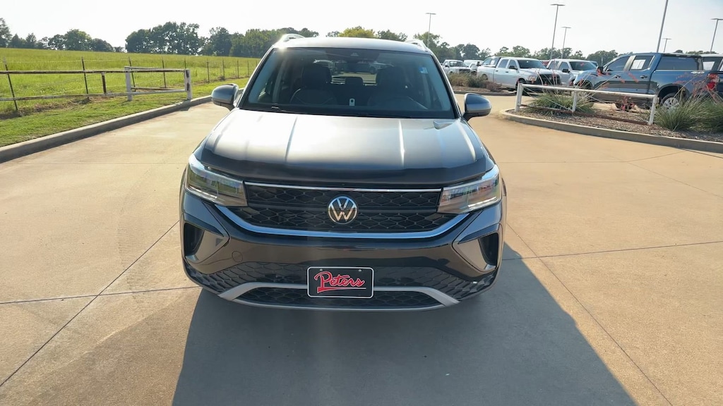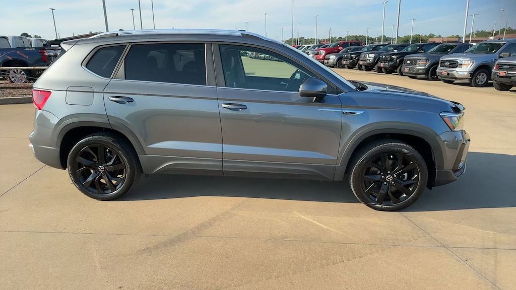 This 2023 Volkswagen Taos 1.5T SE in Platinum Gray Metallic comes with the following features: 1.5L I4 Turbocharged DOHC 16V LEV3-SULEV30 158hp 8-Speed Automatic with Tiptronic FWD Black Wheel Package (Wheels: 18" Black Painted Alloy), Taos Protection Package (Rubber Mats) (Luggage Net and Rubber Mats Kit (SNM)), 3.23 Axle Ratio, 4-Wheel Disc Brakes, 6 Speakers, ABS brakes, Active Blind Spot Monitor, Air Conditioning, Alloy wheels, AM/FM radio: SiriusXM with 360L, Auto High-beam Headlights, Auto-Dimming Rear-View Mirror, Brake assist, Bumpers: body-color, Chrome Bumperdillo Protection Plate for Rear Bumper, CloudTex & Cloth Seating Surfaces, Compass, Delay-off headlights, Driver door bin, Driver vanity mirror, Dual front impact airbags, Dual front side impact airbags, Electronic Stability Control, Emergency communication system: VW Car-Net Safe & Secure 5-year, Exterior Parking Camera Rear, Front anti-roll bar, Front Bucket Seats, Front Center Armrest, Front reading lights, Front Strut Rear Torsion Beam Suspension, Front wheel independent suspension, Fully automatic headlights, Heated door mirrors, Heated Front Comfort Seats, Heated front seats, Heated steering wheel, Illuminated entry, Leather Shift Knob, Low tire pressure warning, Occupant sensing airbag, Outside temperature display, Overhead airbag, Overhead console, Panic alarm, Passenger door bin, Passenger vanity mirror, Power door mirrors, Power driver seat, Power steering, Power windows, Radio data system, Radio: MIB3 Composition Media AM/FM/HD, Rain sensing wipers, Rear anti-roll bar, Rear seat center armrest, Rear Sensors Credit, Rear window defroster, Rear window wiper, Remote keyless entry, Roadside Assistance Kit, Roof rack: rails only, Security system, Speed control, Speed-sensing steering, Split folding rear seat, Spoiler, Steering wheel mounted audio controls, Tachometer, Telescoping steering wheel, Tilt steering wheel, Traction control, Trip computer, Variably intermittent wipers, VW Care, and Wheels: 18" 2-Tone Machined Alloy.