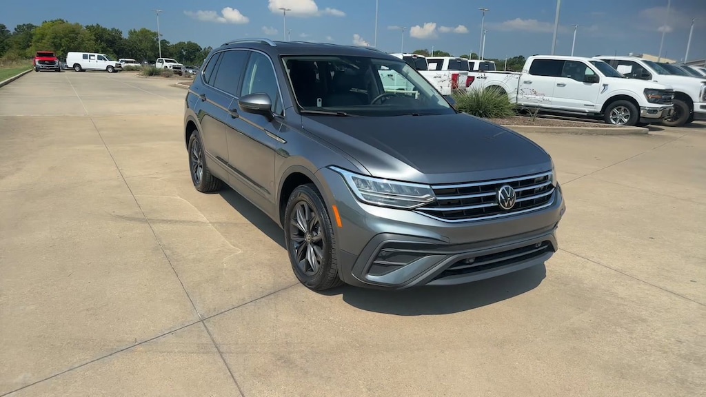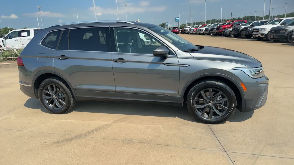 This 2024 Volkswagen Tiguan 2.0T SE in Gray comes with the following features: 2.0L TSI DOHC 8-Speed Automatic with Tiptronic FWD 3.33 Axle Ratio, 3rd row seats: bench, 4-Wheel Disc Brakes, 4-Wheel Independent Suspension, 6 Speakers, ABS brakes, Air Conditioning, Alloy wheels, AM/FM radio: SiriusXM with 360L, Auto-dimming Rear-View mirror, Automatic temperature control, Brake assist, Bumpers: body-color, Compass, Delay-off headlights, Driver door bin, Driver vanity mirror, Dual front impact airbags, Dual front side impact airbags, Electronic Stability Control, Emergency communication system: VW Car-Net Safe & Secure 5-year, Exterior Parking Camera Rear, Four wheel independent suspension, Front anti-roll bar, Front Bucket Seats, Front Center Armrest, Front dual zone A/C, Front reading lights, Fully automatic headlights, Heated door mirrors, Heated Front Seats, Heated front seats, Illuminated entry, Leather Shift Knob, Low tire pressure warning, Occupant sensing airbag, Outside temperature display, Overhead airbag, Overhead console, Panic alarm, Passenger door bin, Passenger vanity mirror, Perforated V-Tex Leatherette Seating Surfaces, Power door mirrors, Power driver seat, Power Liftgate, Power steering, Power windows, Radio data system, Radio: MIB3 Composition Media AM/FM/HD, Rain sensing wipers, Rear anti-roll bar, Rear reading lights, Rear seat center armrest, Rear window defroster, Rear window wiper, Remote keyless entry, Security system, Speed control, Speed-sensing steering, Split folding rear seat, Spoiler, Steering wheel mounted audio controls, Tachometer, Telescoping steering wheel, Tilt steering wheel, Traction control, Trip computer, Turn signal indicator mirrors, Variably intermittent wipers, and Wheels: 18" Dark Graphite Painted 10-Spoke Alloy.