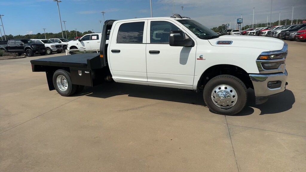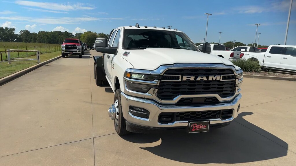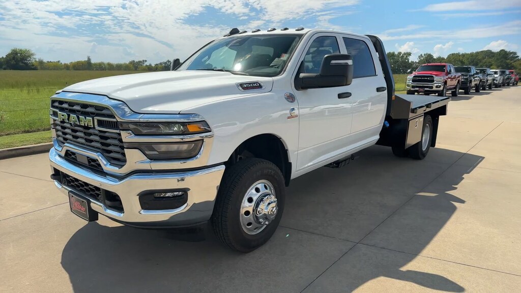 NXG FLATBED. This 2026 Ram 3500 Tradesman in Bright White Clearcoat comes with the following features: Cummins 6.7L I6 Turbodiesel 8-Speed Automatic 4WD Chrome Appearance Group (DISC) (Bright Front Bumper, Center Hub, Chrome Grille Surround, Matte Black Mesh Grille w/Chrome, and Wheels: 18" x 8.0" Polished Aluminum), Quick Order Package 25A Tradesman, Tradesman Level 1 Equipment Group (Black Exterior Mirrors, Black Power Heated Fold Telescope Mirrors, Exterior Mirrors Courtesy Lamps, Exterior Mirrors w/Heating Element, Exterior Mirrors w/Supplemental Signals, Manual Folding Exterior Mirrors, Manual Telescoping Mirrors, Mirror Running Lights, Power Adjust Mirrors, Power-Adjustable Convex Aux Mirrors, Rear Window Defroster, Trailer Brake Control, and Trailer Light Check), 11.50" Dual Wheels Rear Axle, 2 Way Rear Headrest Seat, 4-Wheel Disc Brakes, 40/20/40 Split Bench Seat, 4G LTE Wi-Fi Hot Spot, 52 & 22 Gallon Dual Fuel Tanks, 6 Speakers, 6000# Front Axle w/Hub Ext, ABS brakes, Air Conditioning, AM/FM radio: SiriusXM, Apple CarPlay, Apple CarPlay/Android Auto, Black Wheel Center Hub, Cargo & CHMSL Lamp, Compass, Connectivity - US/Canada, Delay-off headlights, Driver door bin, Dual front impact airbags, Dual Rear Wheels, Electronic Stability Control, Emergency communication system: RAM Connect, For Details, Visit DriveUconnect.com, Front anti-roll bar, Front Armrest w/Cupholders, Front Center Armrest w/Storage, Front fog lights, Front License Plate Bracket, Front reading lights, Fully automatic headlights, Global Telematics Box Module (TBM), Google Android Auto, GPS Antenna Input, HD Vinyl 40/20/40 Split Bench Seat, Illuminated entry, Integrated Voice Command w/Bluetooth, Manual Adjust 4-Way Driver Seat, Manual Adjust 4-Way Front Passenger Seat, Manual DPF Regeneration, Manufacturer's Statement of Origin, Nexen Brand Tires, Occupant sensing airbag, Outside temperature display, Overhead console, Panic alarm, ParkSense Front/Rear Park Assist System, ParkView Rear Back-Up Camera, Passenger door bin, Passenger vanity mirror, Power steering, Power windows, Radio data system, Radio: Uconnect 5 w/8.4" Display, Rear anti-roll bar, Rear Folding Seat, Remote keyless entry, Remote USB Port - Charge Only, Speed control, Storage Tray, Tachometer, Temperature & Compass Gauge, Tilt steering wheel, Traction control, Variably intermittent wipers, Voltmeter, Wheels: 17" x 6.0" Polished Aluminum, and Wheels: 18" x 8.0" Steel PainteD.